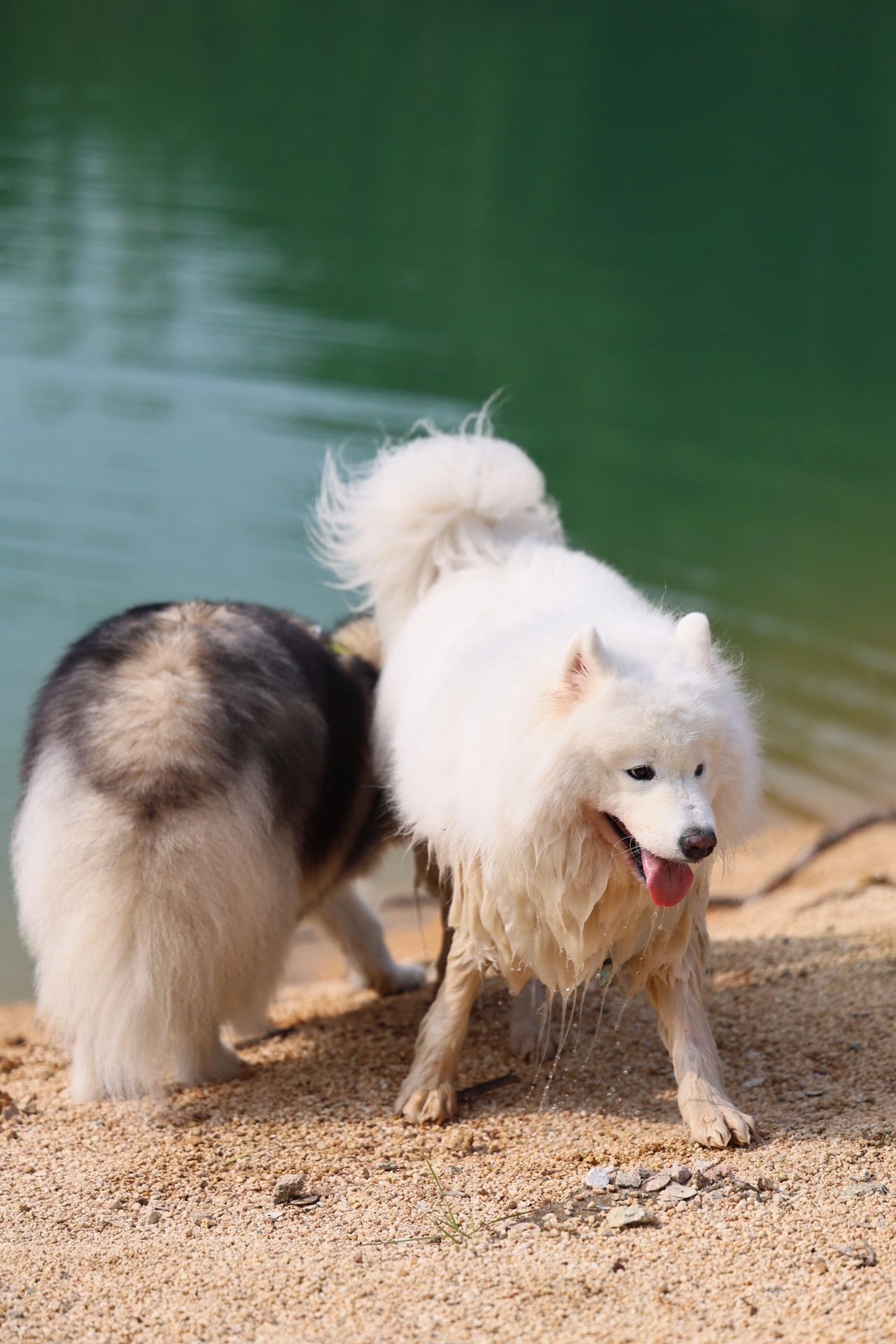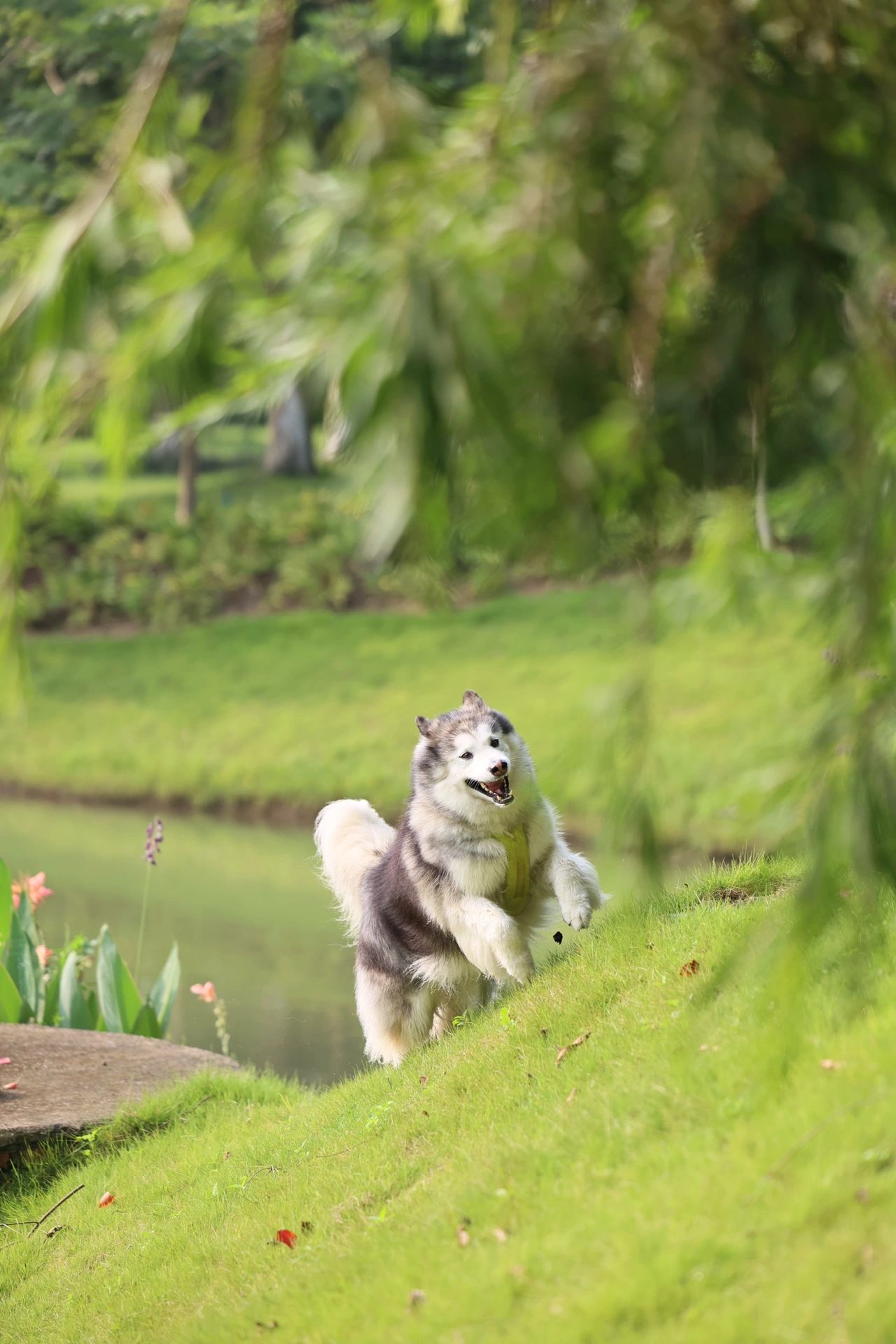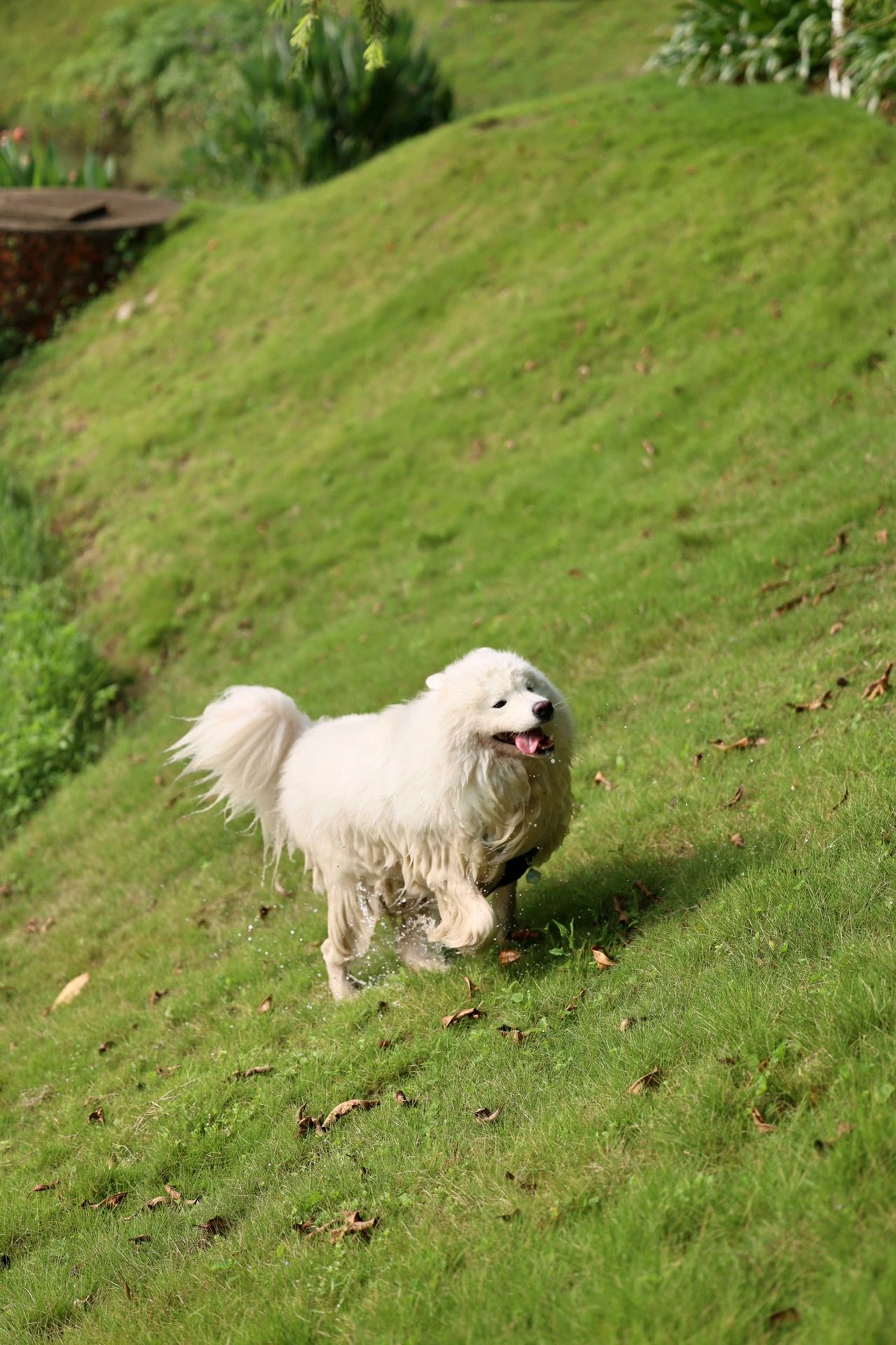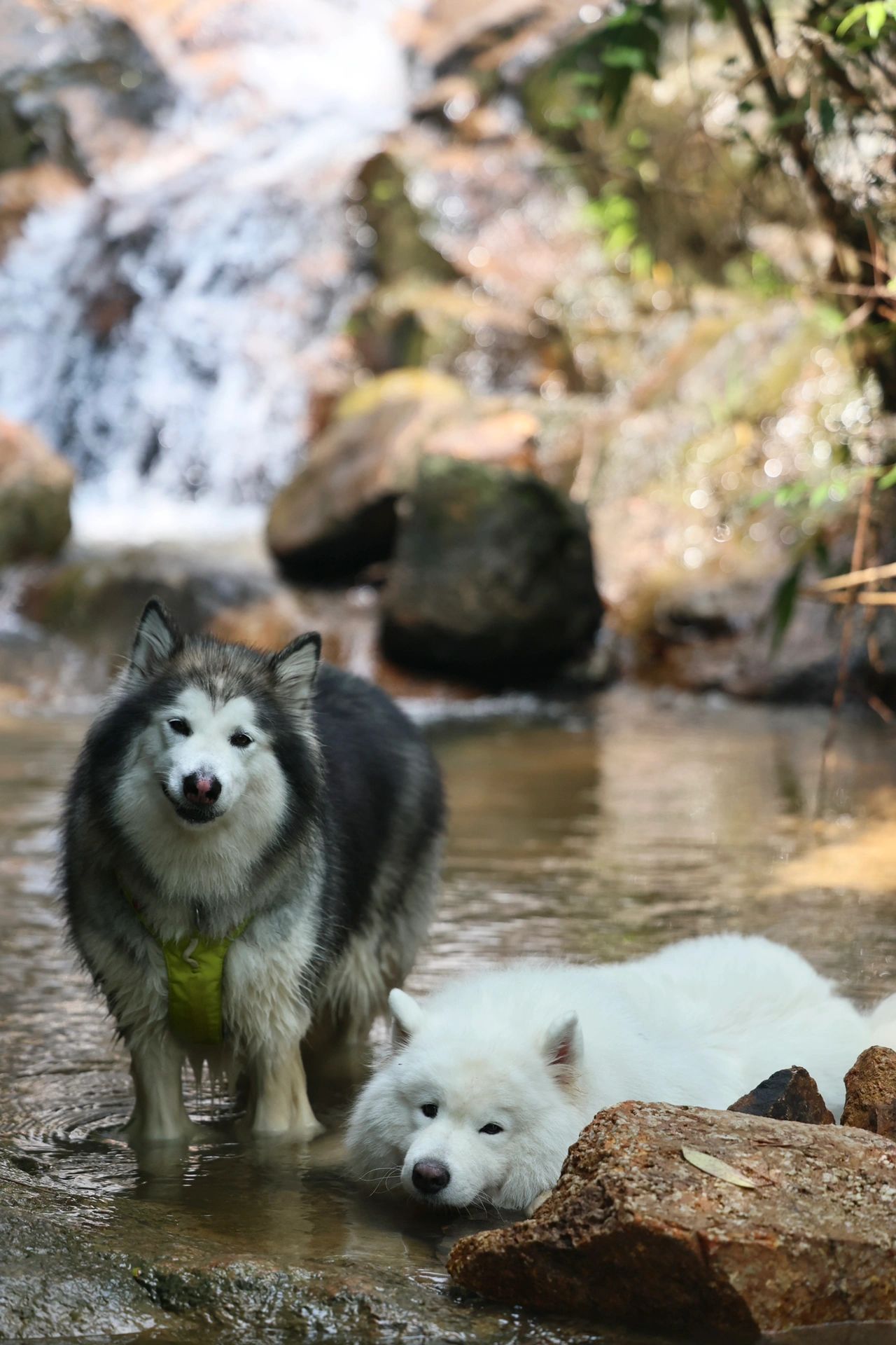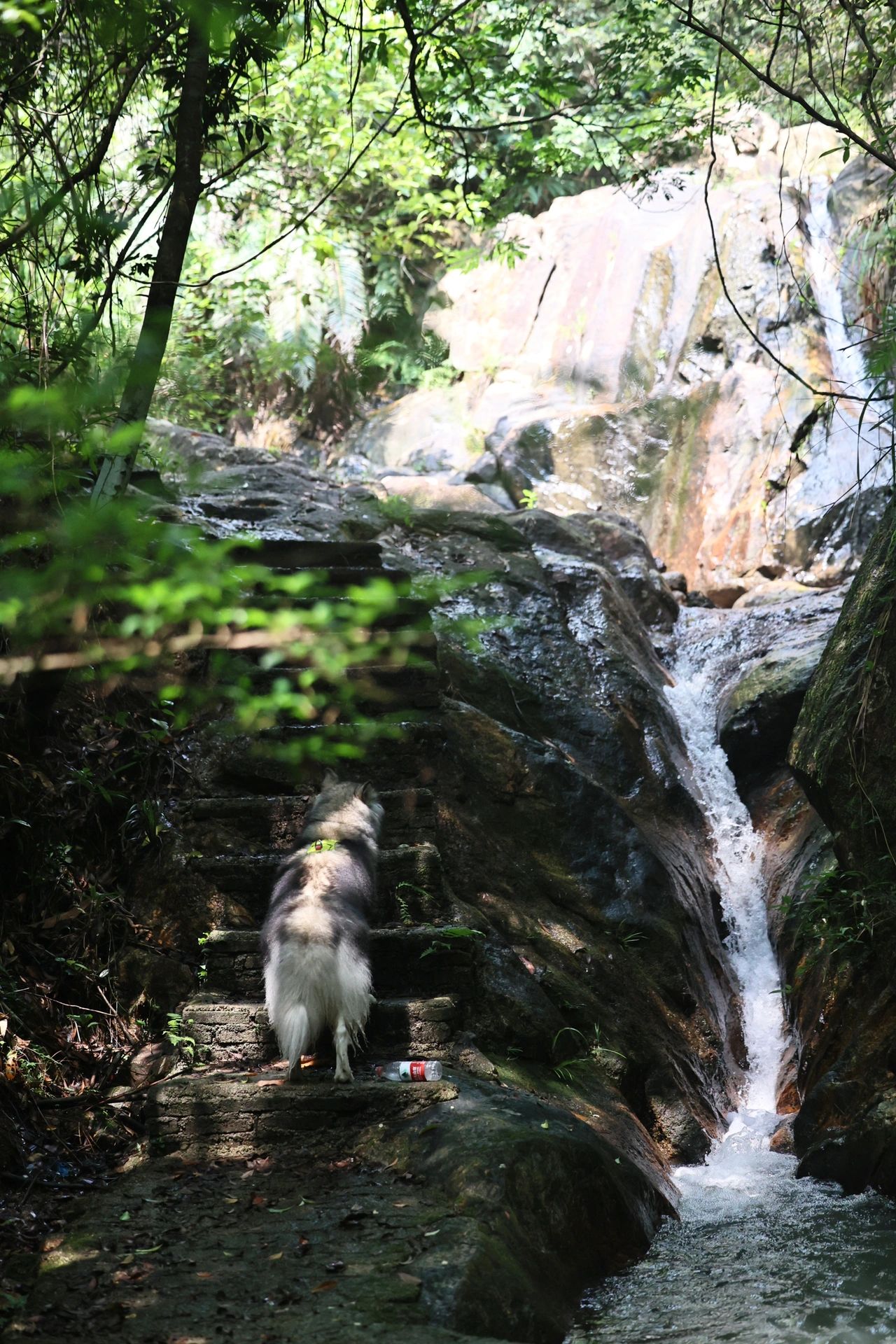 走到瀑布的时候 阿龙已经累到狗无表情😐