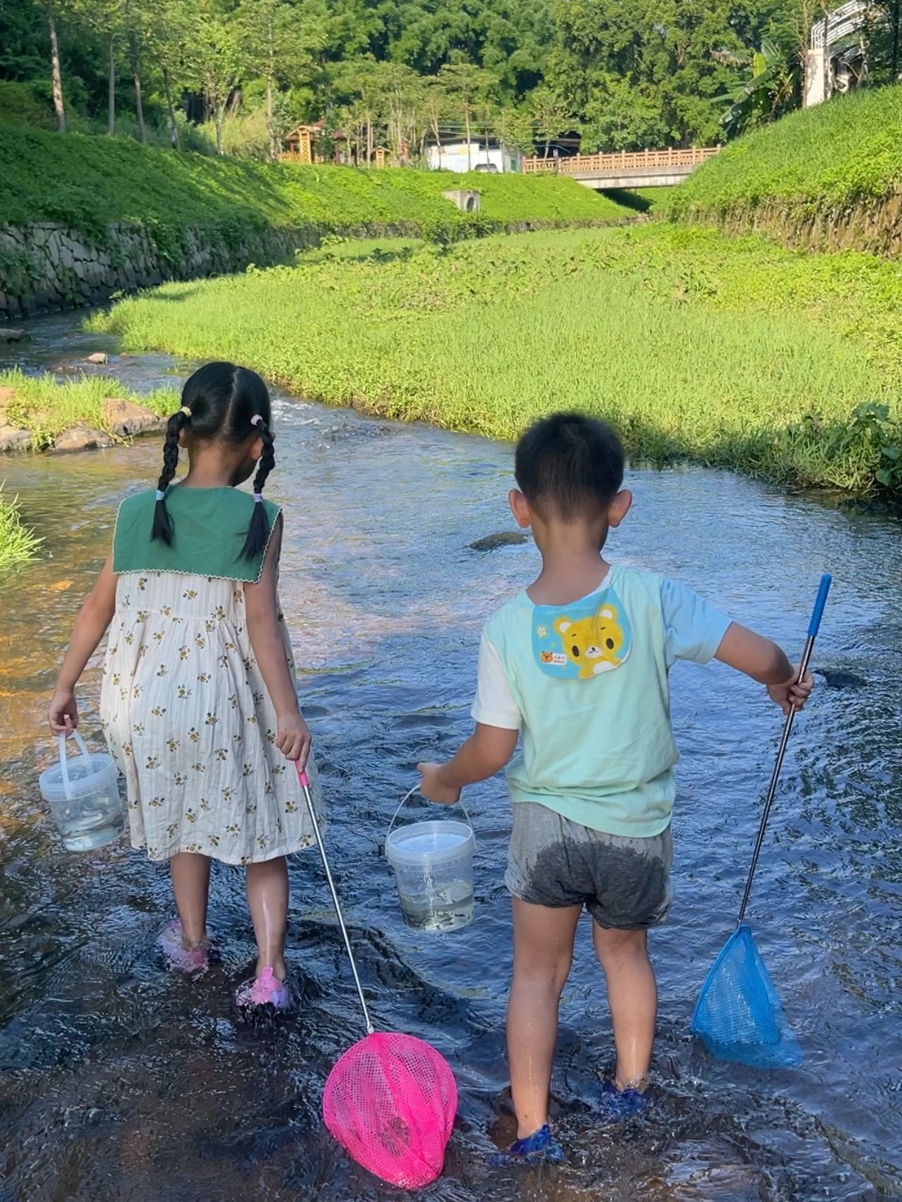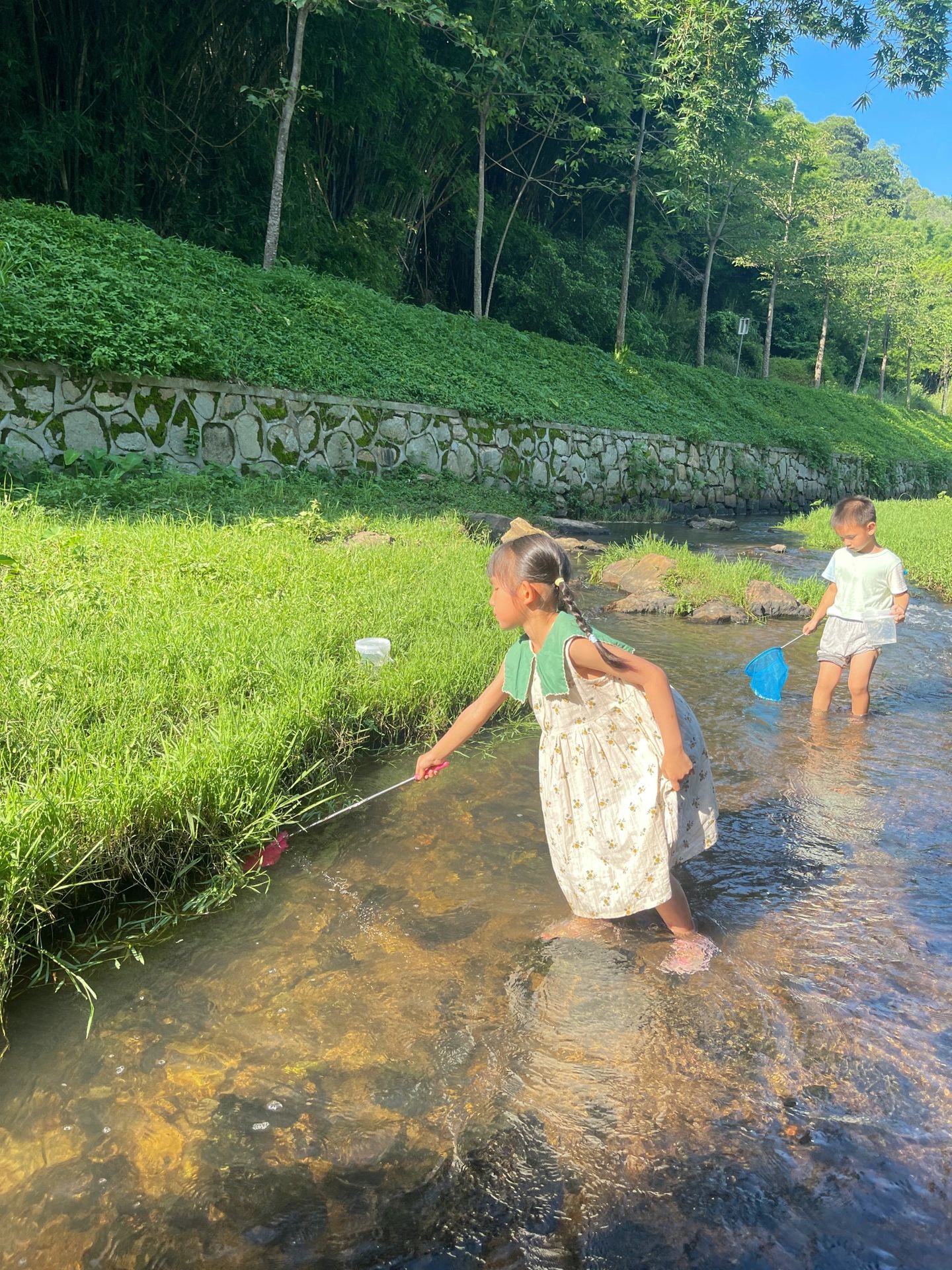 广州市区车程50分钟就到了帽峰山下的溯溪❗️玩水💧捞鱼🐟捞虾🦐摘西瓜🍉摘葡萄🍇 还有免费儿童乐园,太好遛娃了吧‼️溯溪很长,人也不多 我们到的这个地点旁边就有免费停车、厕所、西瓜园和饭店,很方便哦,最后一张有地图🗺️ 🌿悦榕庄(帽峰山店) 😋可以吃佛跳墙哦 📍白云区太和镇头陂飞鹅坑西街44号101房 🅿️对面就是免费停车地方 🚌公交车直达“飞鹅村站”,步行5分钟 🦐溯溪捞鱼捞虾 🔸溪水清澈,有大树遮阴 ▫️水位到小孩的脚踝 🔸夏日玩水好凉快啊 ▫️好多小鱼,但是跑得很快 ‼️惊喜‼️ 🔸草丛旁边一网下去 ▫️超多小虾啊 🔸小孩都可以轻松抓到 ▫️翻翻石头,还有螃蟹哦🦀 🥰头陂公园-儿童玩乐 ✅滑梯、沙池、攀爬、摇摇马、碰碰车、旋转木马、射气球、套圈圈等等 ✅很多小吃小摊档 ✅旁边也有玩水的 ✅公园对面有摘西瓜、香瓜、摘葡萄 帽峰山下这个的溯溪地,夏日清凉玩水、吃喝玩乐一站式啊,太好遛娃啦‼️