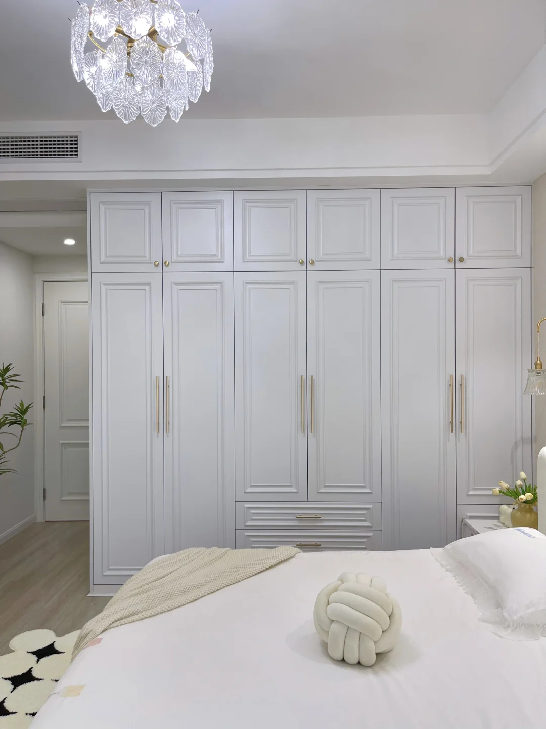 衣柜:白色法式轻奢风衣柜,搭配金色拉手,满满奶油风