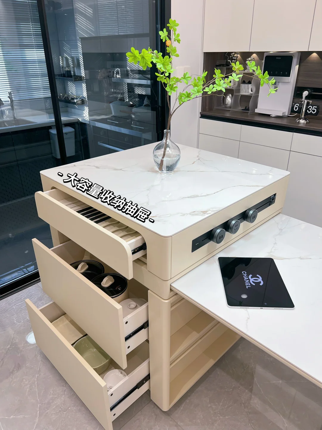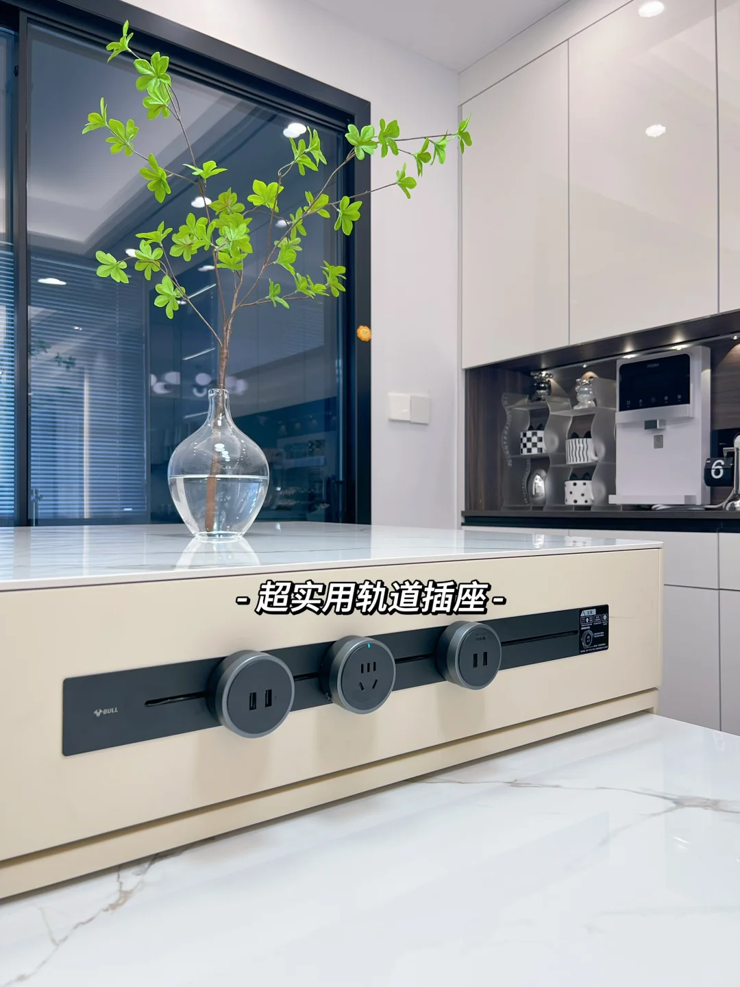 第三:这款岛台还配备公牛滑轨插座,两孔还有三孔都可使用无论是手机充电,还是吃火锅,都轻松搞定