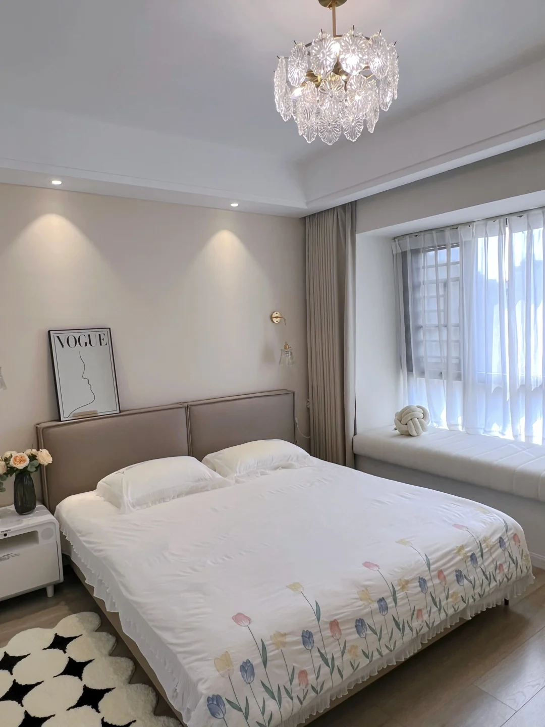 •墙面:卧室背景是奶咖色,其他三面墙是杏子灰,顶面是白色,温柔又耐看~