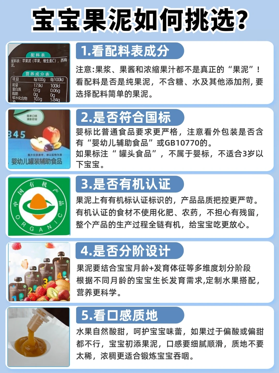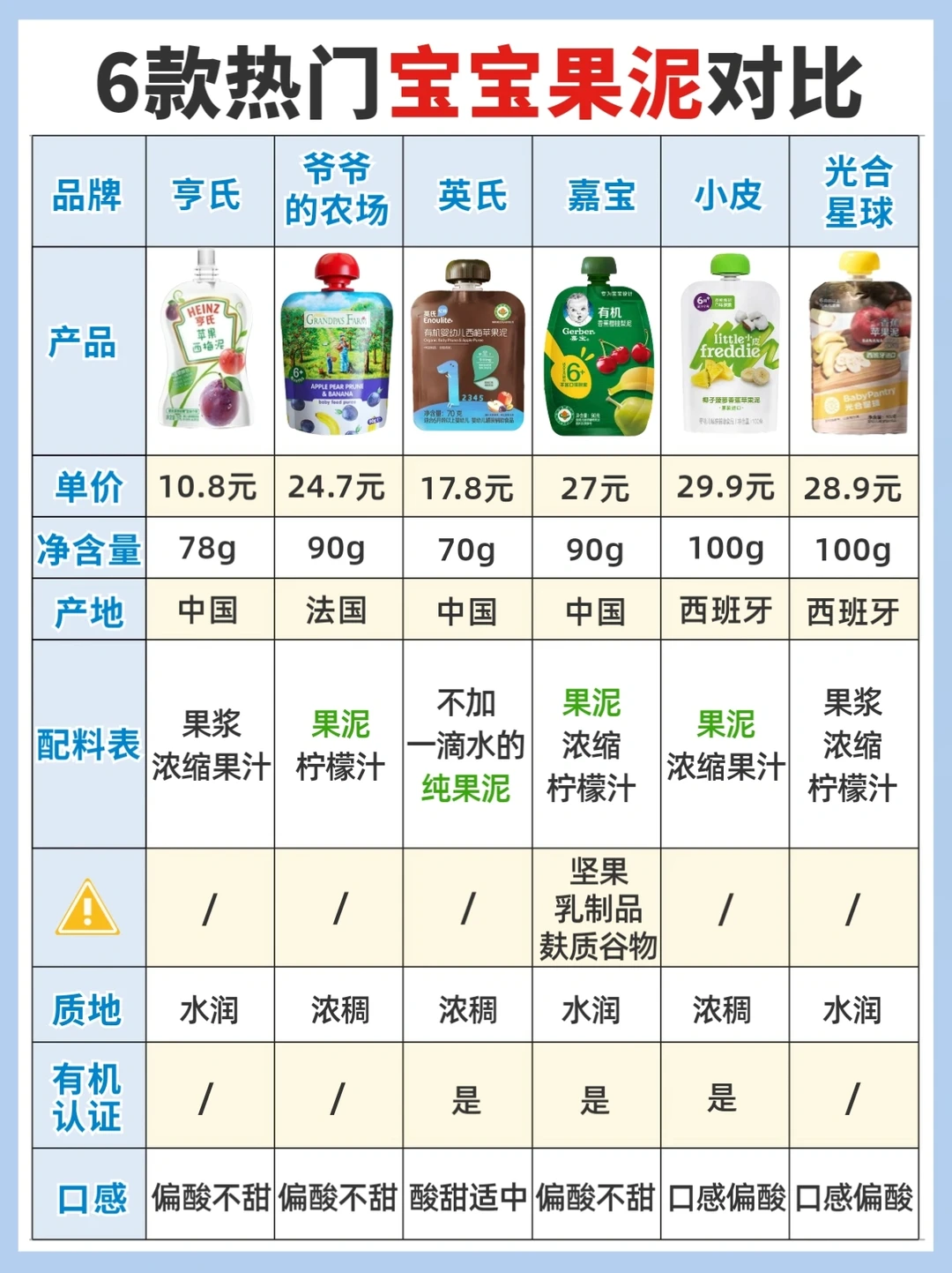 宝宝初添加辅食一周后就可以添加果泥啦!不用再科普大家应该都知道成品果泥好处多多: