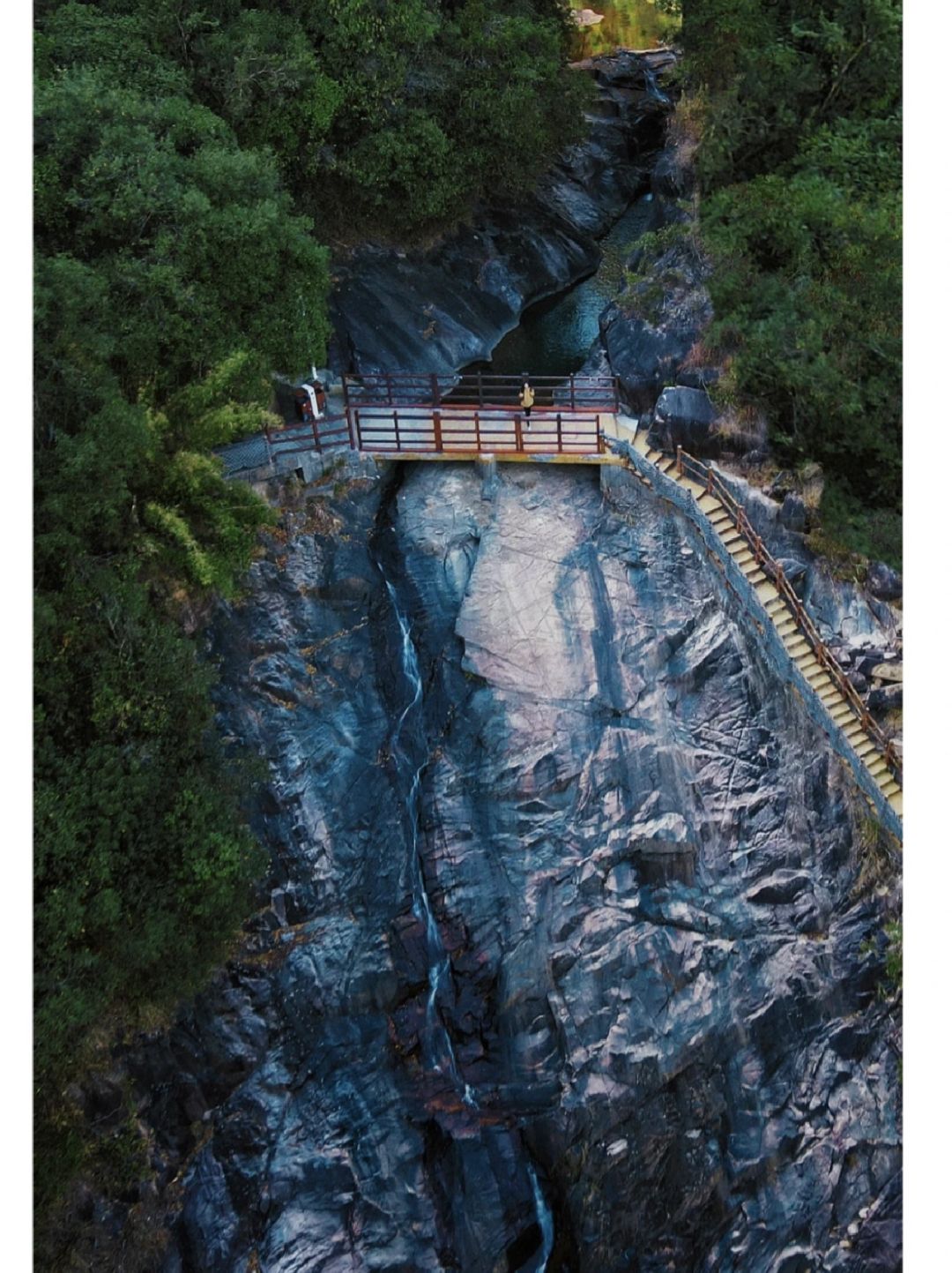 这里森林绿植很多,湖水蓝中带绿很清澈,还有一个飞天瀑布,水流充足的时候还是很壮观的