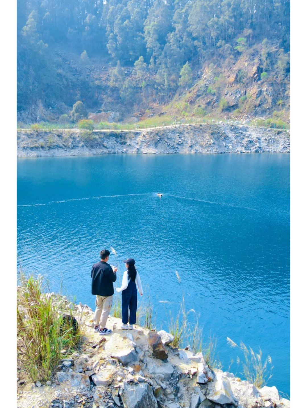 这里也被称为广州“天池”,由两个石矿坑组成的,水很蓝,很好看!只需30分钟就能登顶了