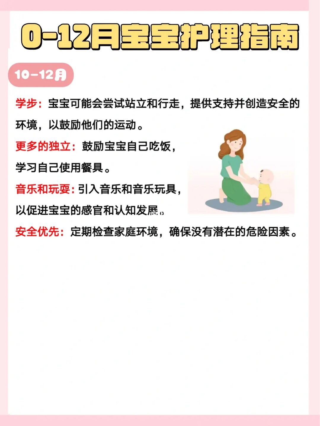 宝宝的成长过程是一段令人难以置信的旅程,充满了奇迹、挑战和成就。对于父母和护理者来说,照顾从出生到12岁的宝宝是一项充满责任和爱的工作。这里整理了宝宝0-12月的护理指南,它将提供有关喂养、睡眠、教育、情感支持和健康管理的建议,以帮助父母在宝宝的各个发展阶段提供恰到好处的照顾,喜欢能够帮助到爸爸妈妈们~