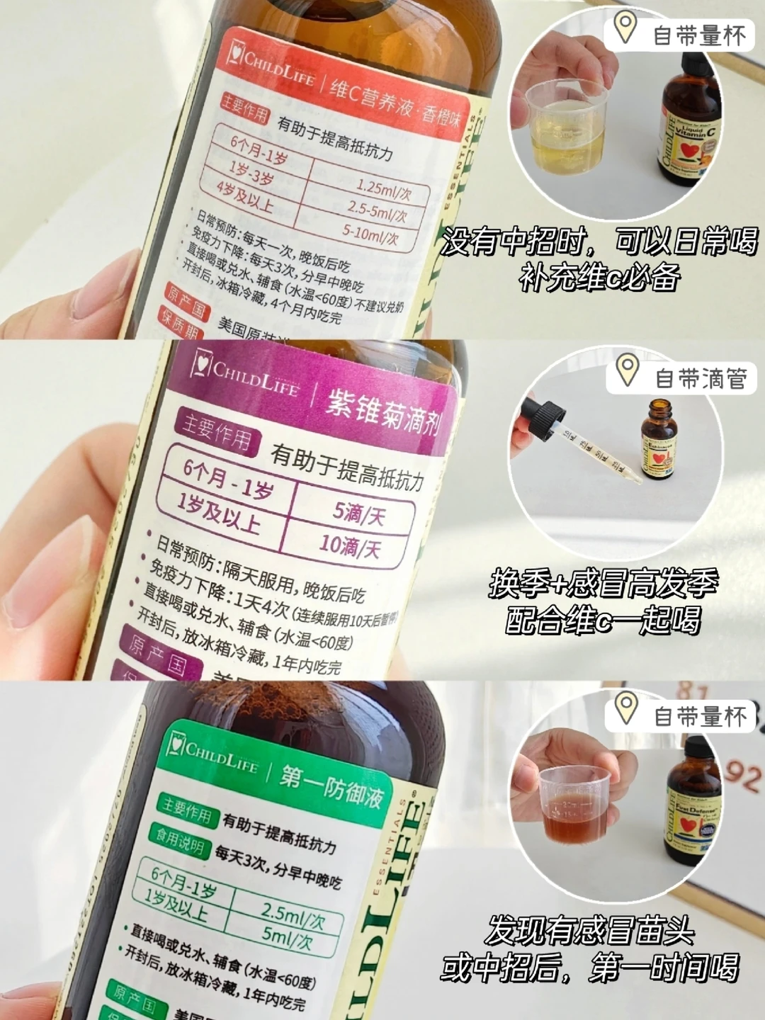 ❤️我的小妙招就是家里常备上🔆ChildLife感冒三件套:维C营养液+紫锥菊滴剂+第一防御液