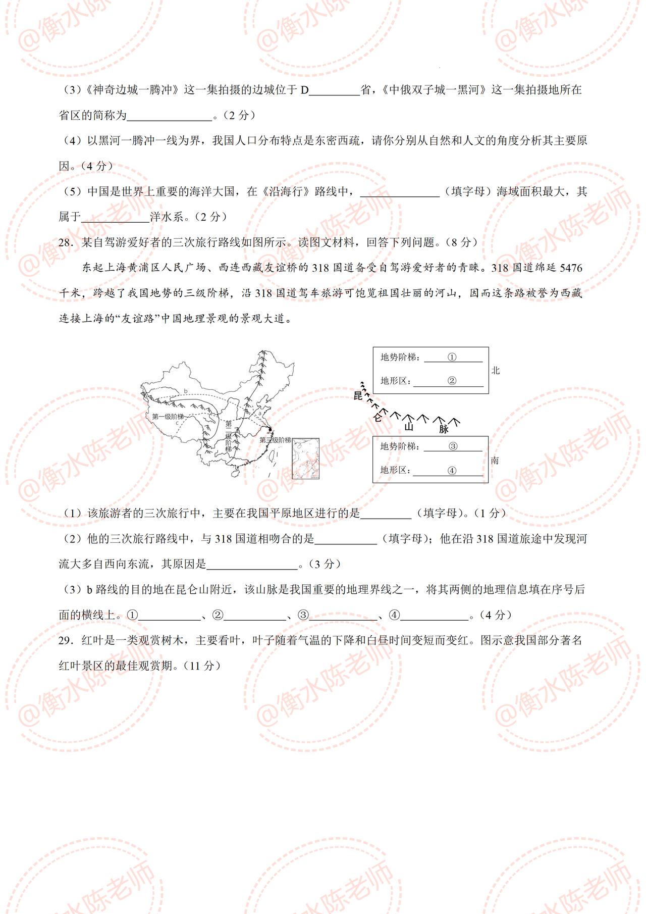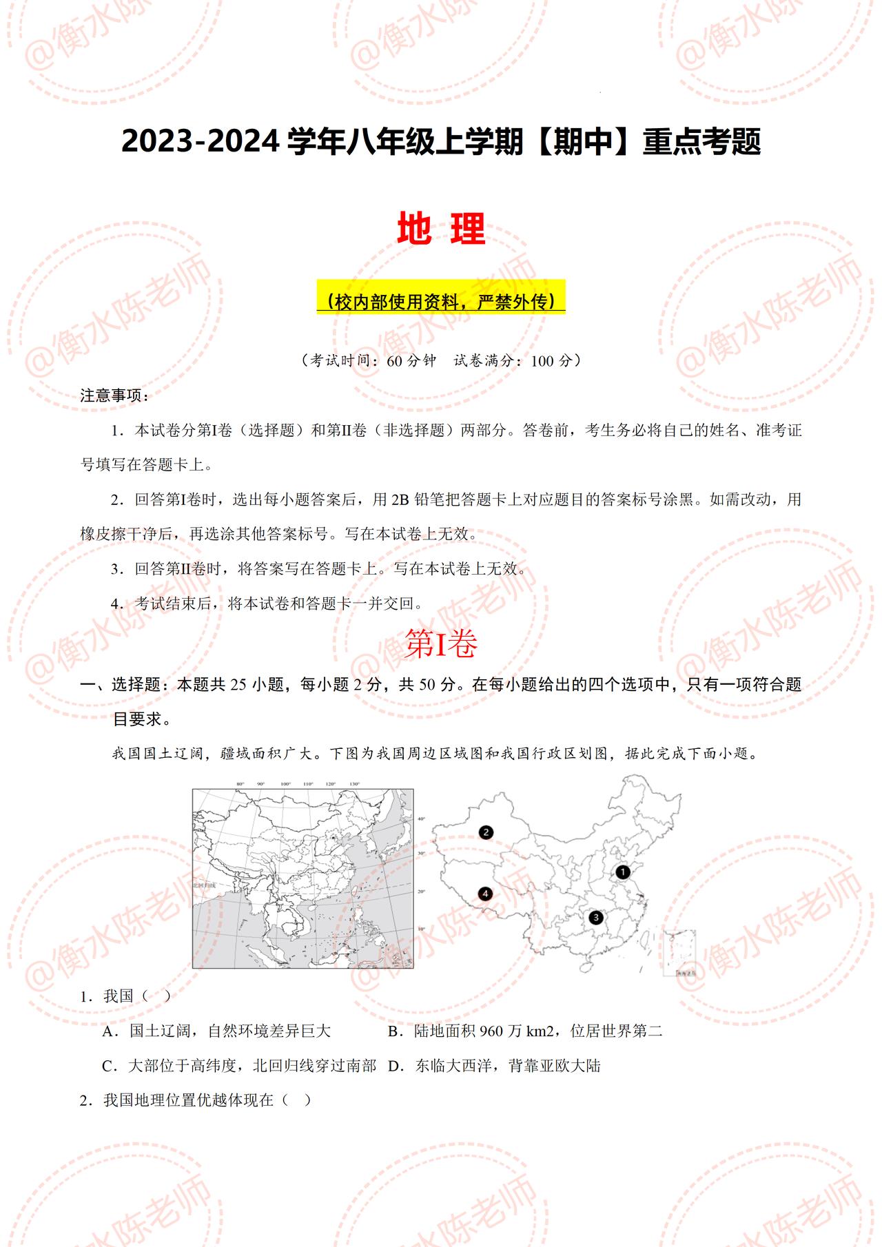 初二的考生,这学期地理生物一定要好好学习,明年面临初中会考地理生物结业考试,成绩非常重要,和初三升学考试成绩有直接关系,不要不在乎哦,今天老师把八年级上学期地理,期中考试的重点试卷,提前发给大家,按照不同的城市、版本编写的,月考成绩没考好的,这次机会好好把握哦,想要获取自己城市期中试卷的,赶紧和我沟通哦。