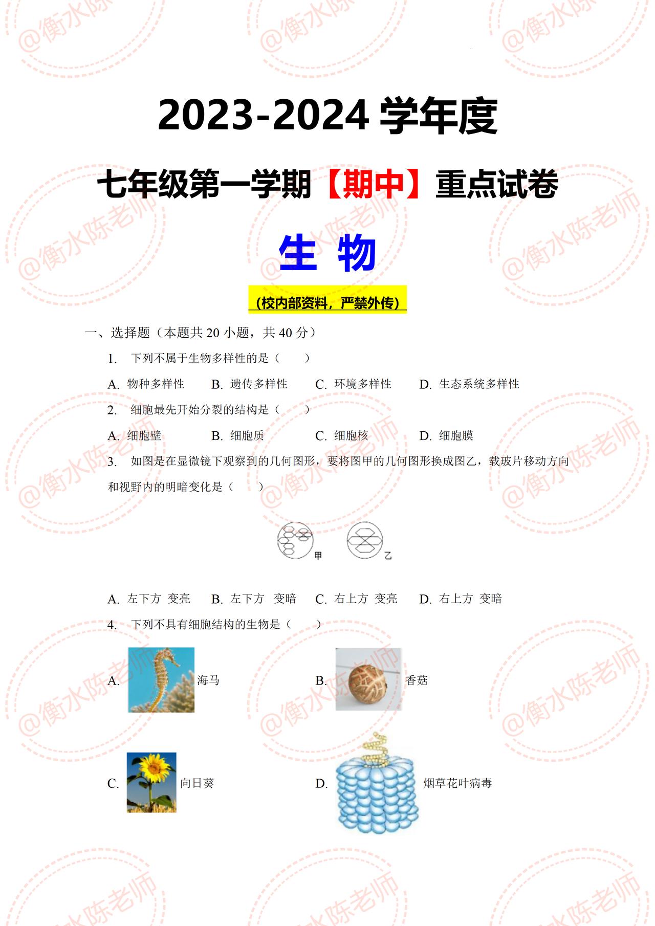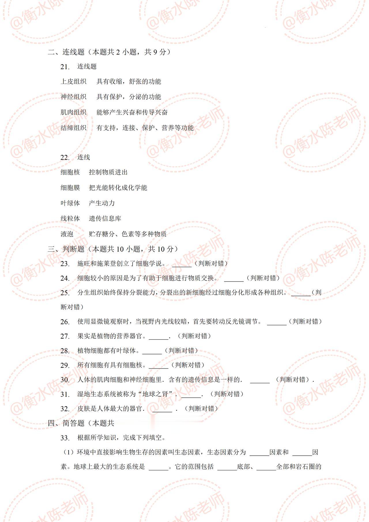 七年级上学期生物期中测试,试卷必出重点考题,期中想要获得好成绩,考到班级前三的好名次,提前刷一遍自己城市对应的期中卷哦,这样的考题把握比较精准,考试中让你少走很多弯路,考试完会感谢我哦,想要获取的考生,记得跟我沟通一下,让你考试多考分数哦。