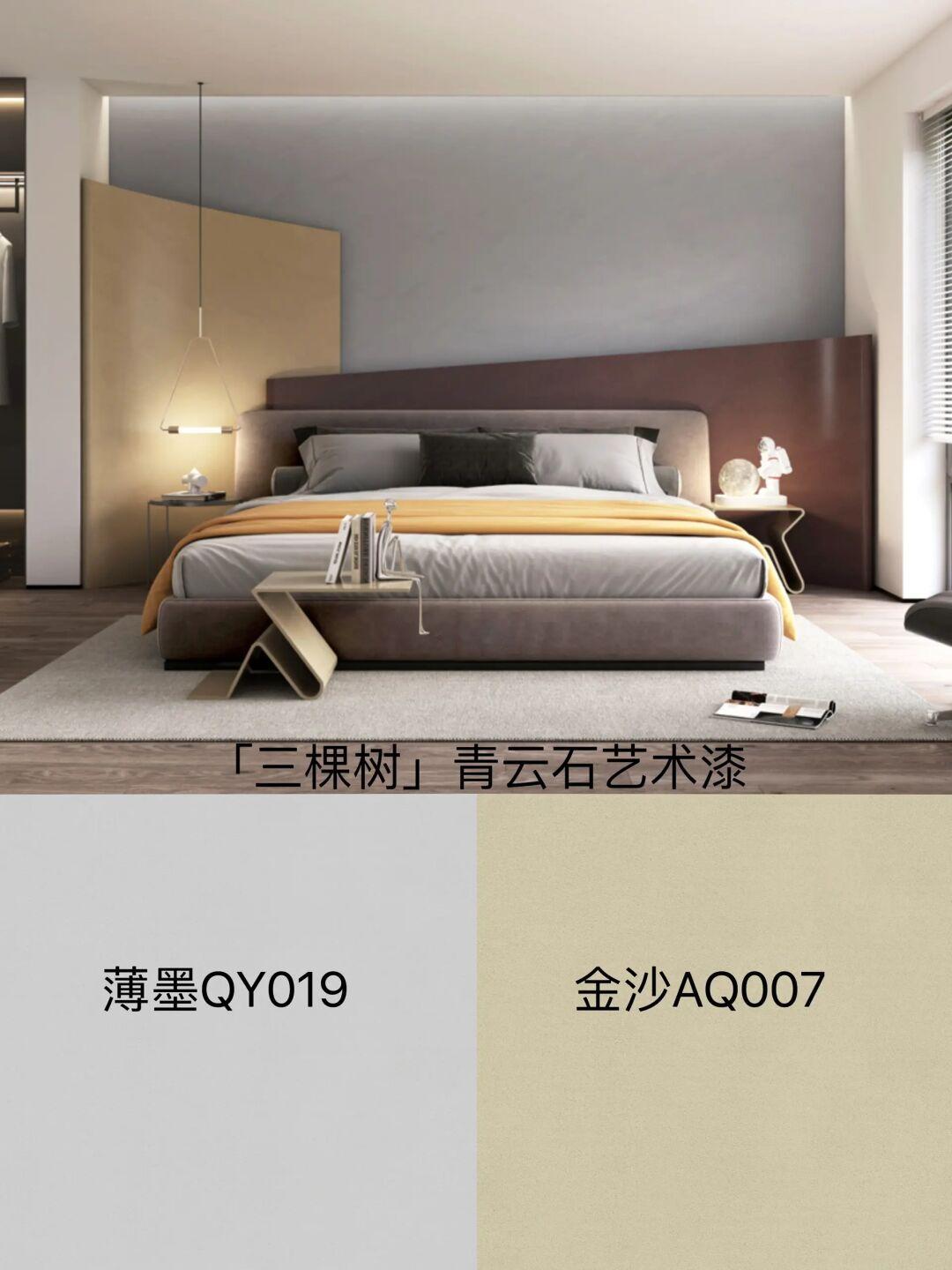 如果换成这种金调的墙面,再结合三棵树青云石独特的微水泥质感,效果会超美丽 两种颜色搭配可以适用在走现代简约风格的家