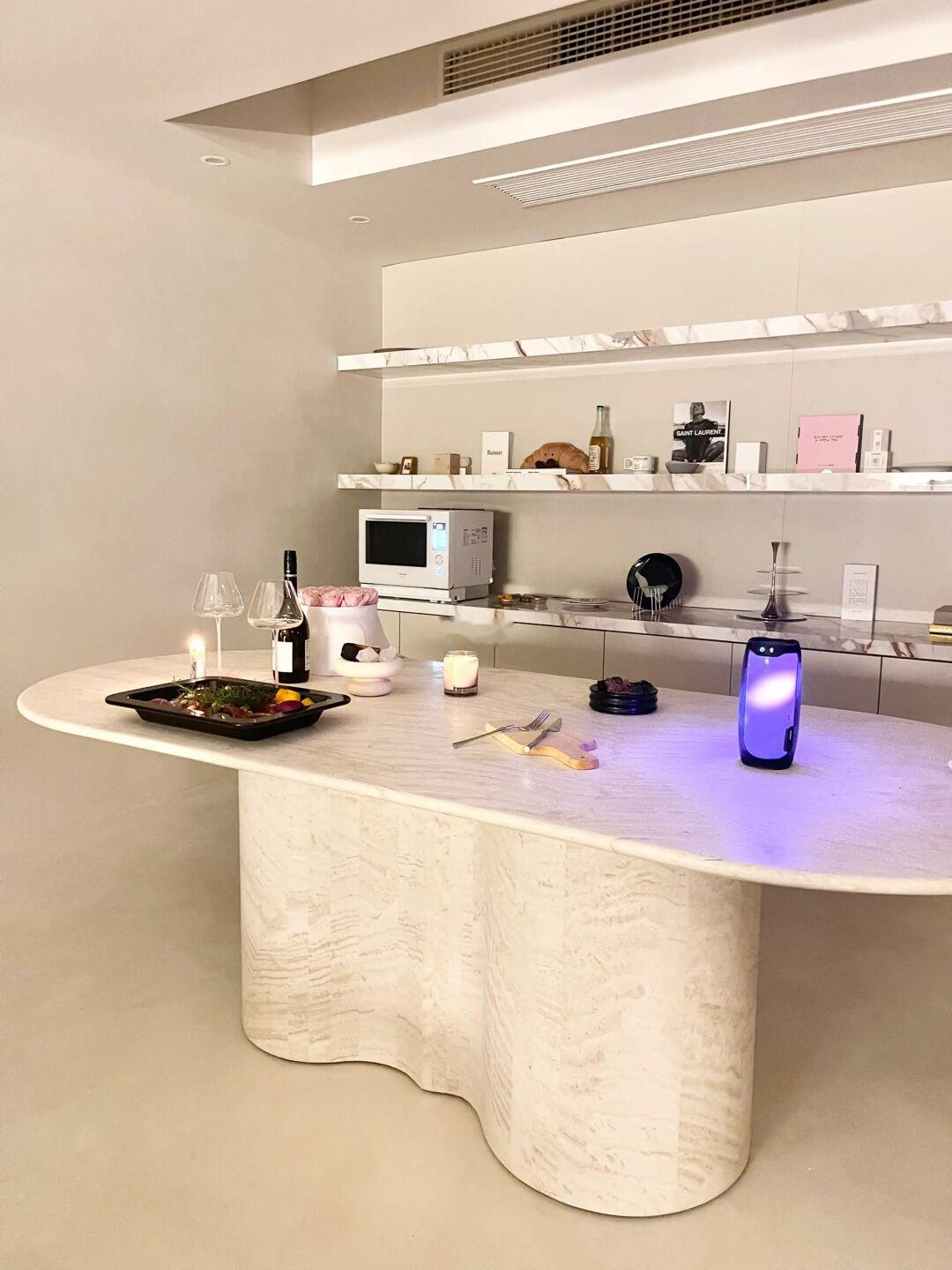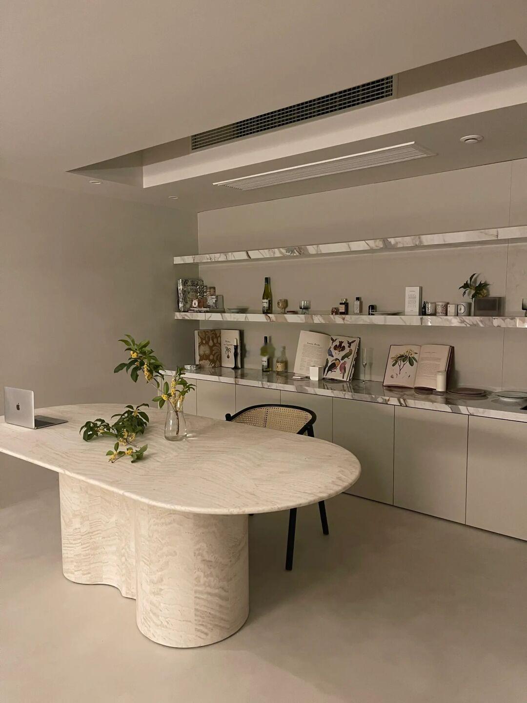 这个颜色是暖调的白色系 纹路高级天然 很适合侘寂风格的家