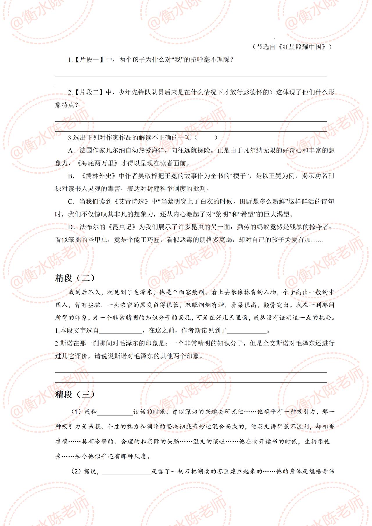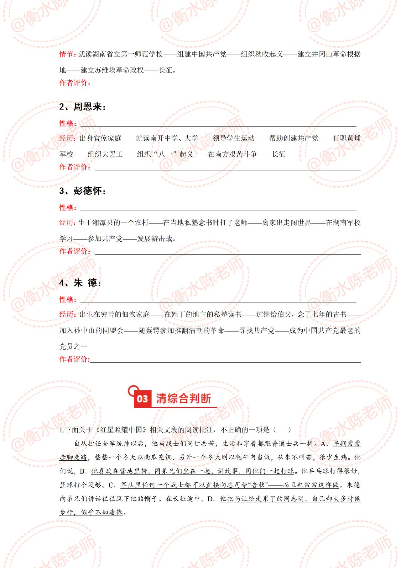 八年级上学期语文,名著阅读《红星照耀中国》,月考、期中、期末,常考热点必出考题,全是平时考试中,出现高频考题,还没有学好这部分内容的考生,考试之前记得做一遍,考试让你不失1分哦,由于资料比较多,只能发布一部分哦。