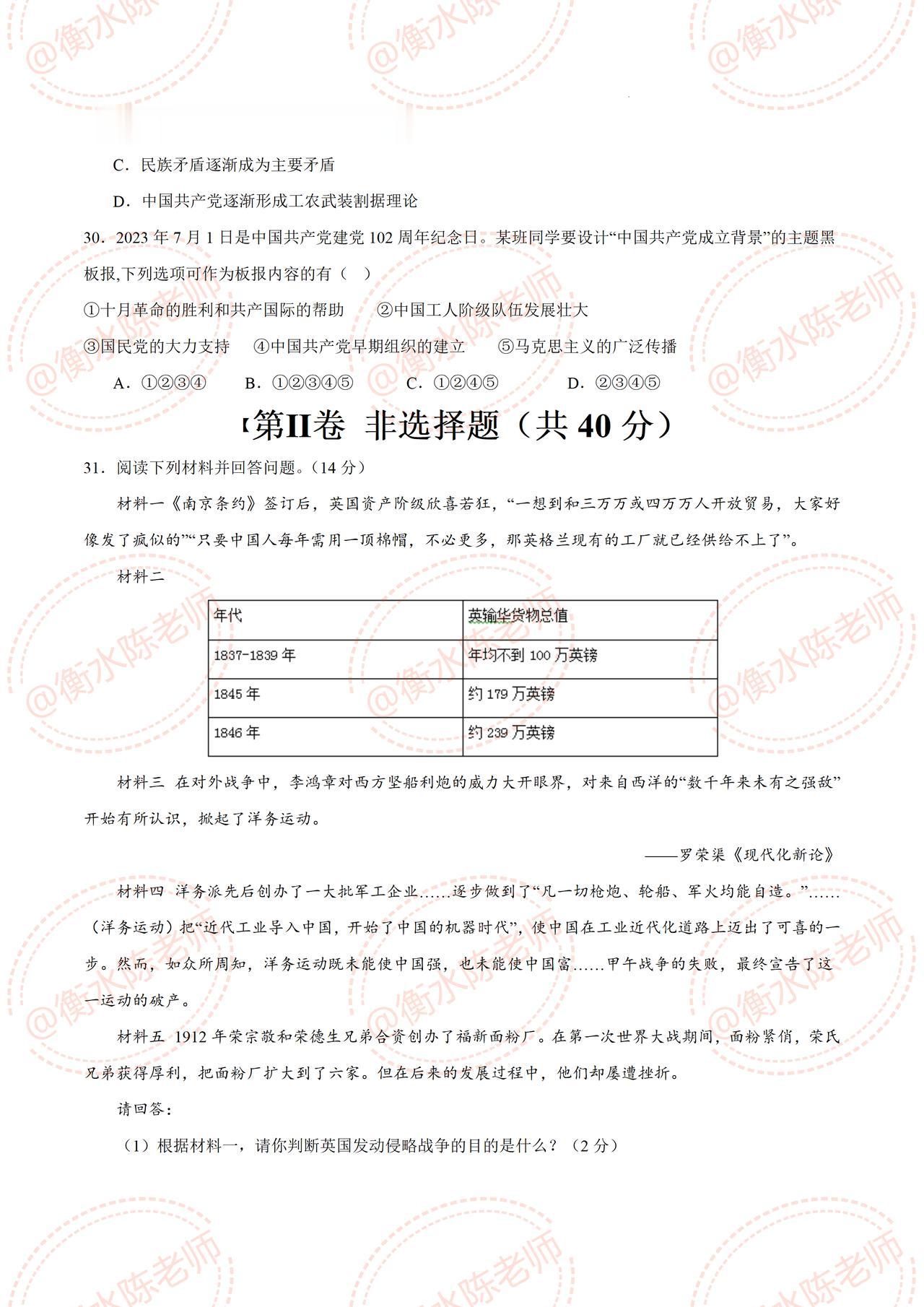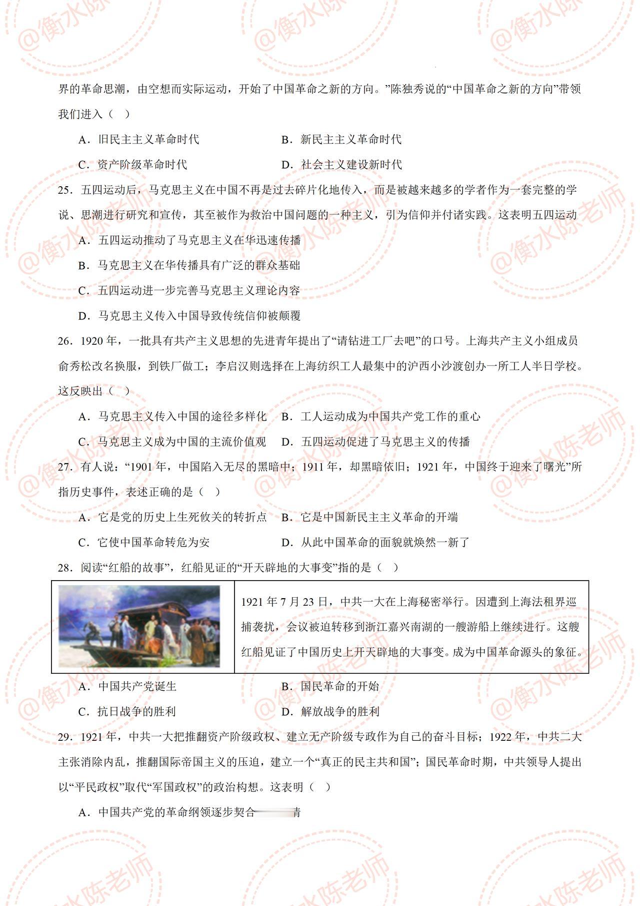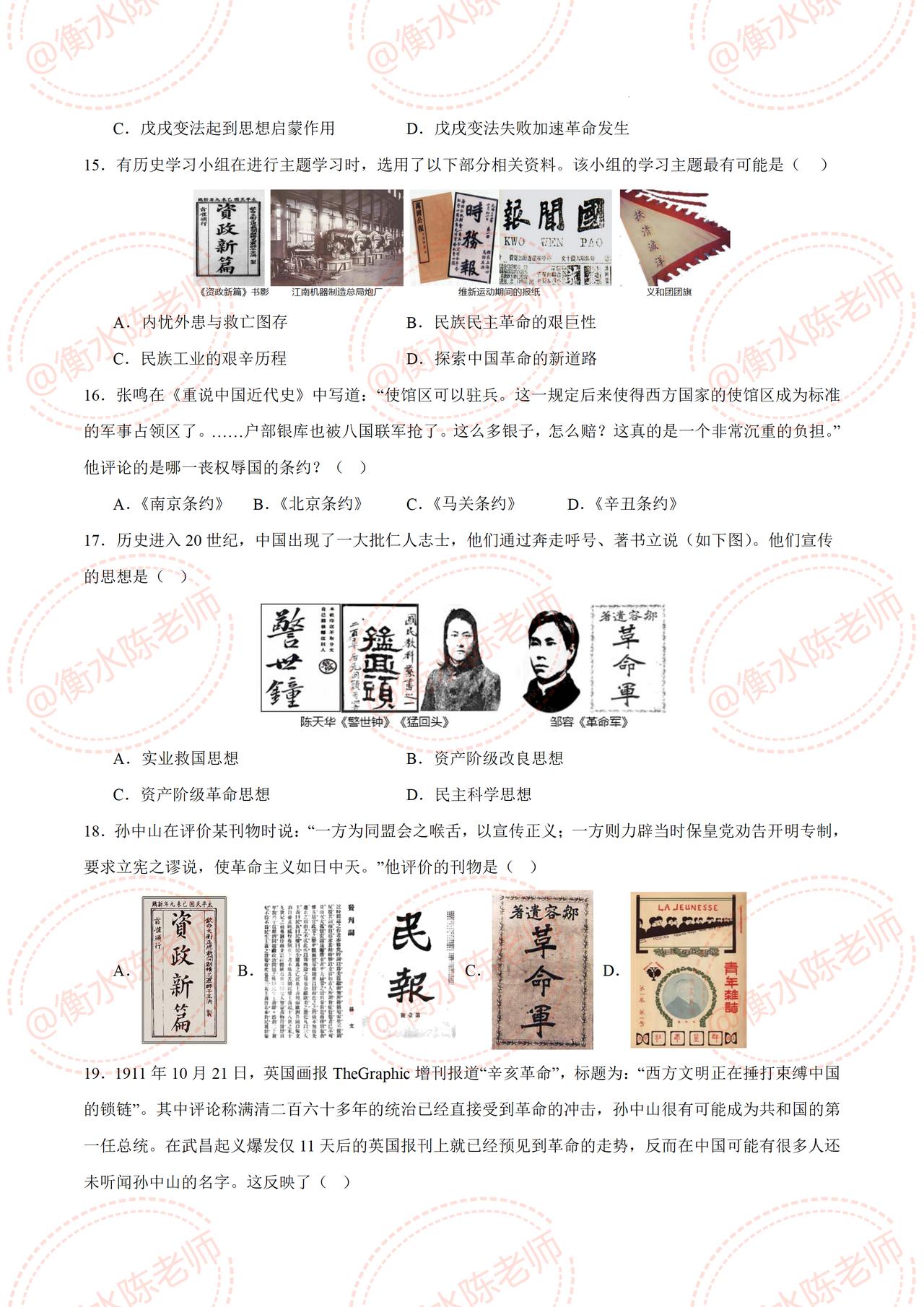 八年级上学期历史,平时考试中经常出现错误,易马虎的热点题型,提前发给大家一部分,历史成绩差的,提前把这套高频常考的考题,认真做完哦,期中考题,是根据不同的城市、版本编写的,想要获取自己城市,对应的期中卷哦,提前和我沟通一下哦,考试让你少走弯路,多考分数哦。