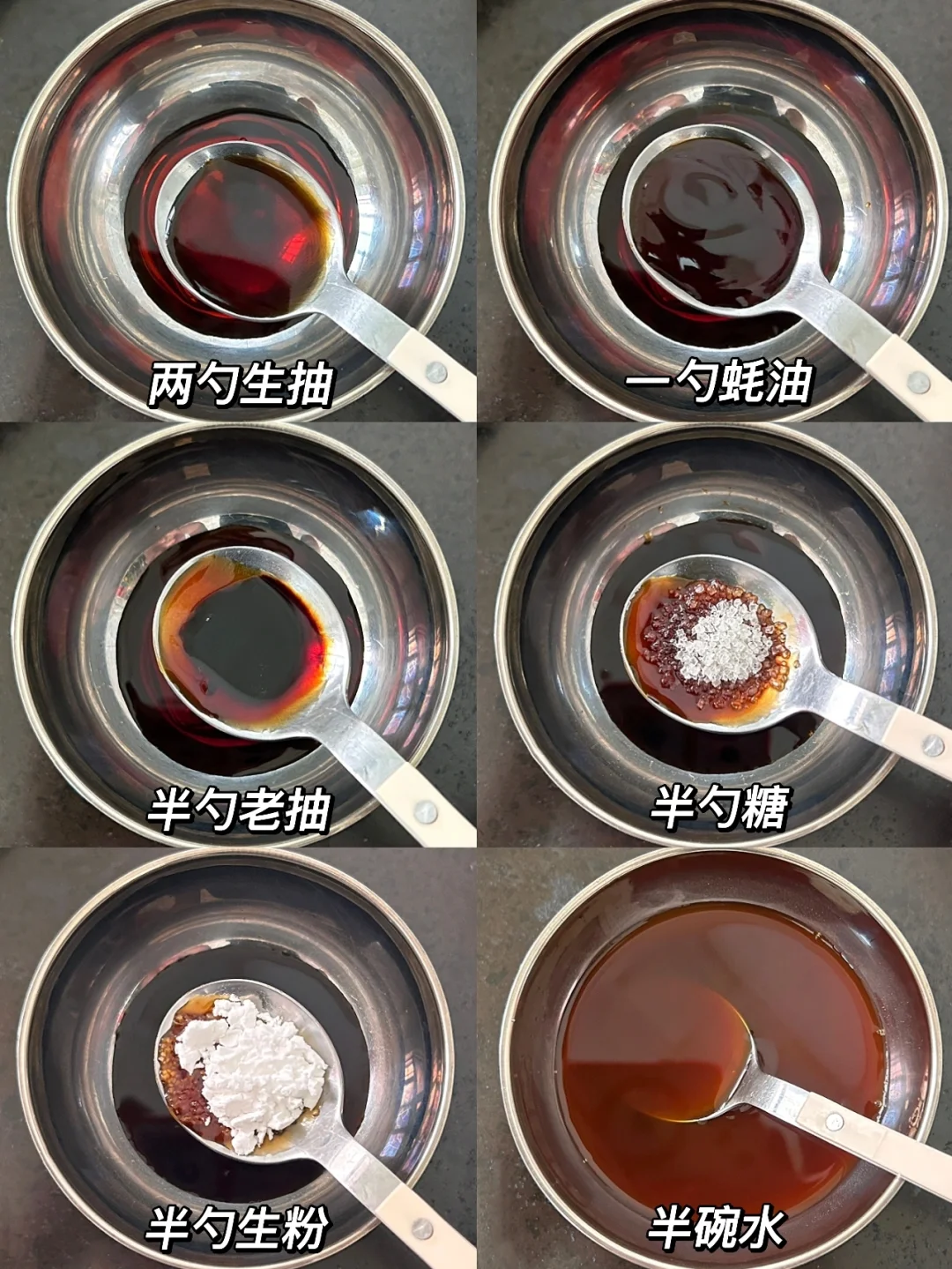 🥃【预调酱汁】:两勺生抽➕一勺蚝油➕半勺老抽➕半勺糖➕半勺生粉➕半碗水