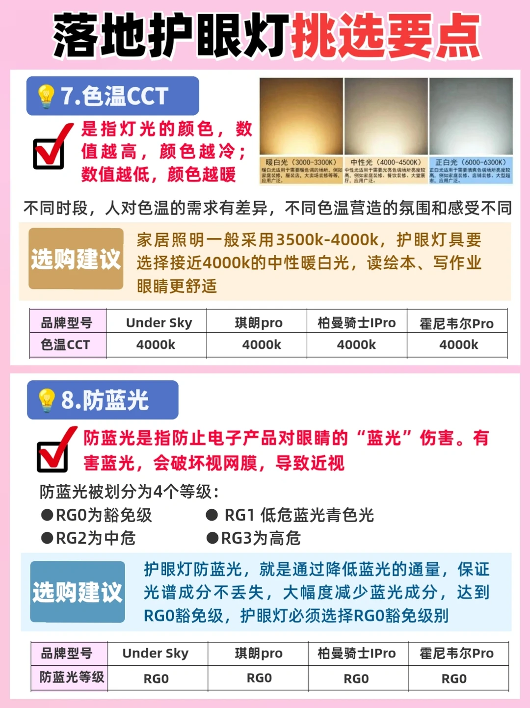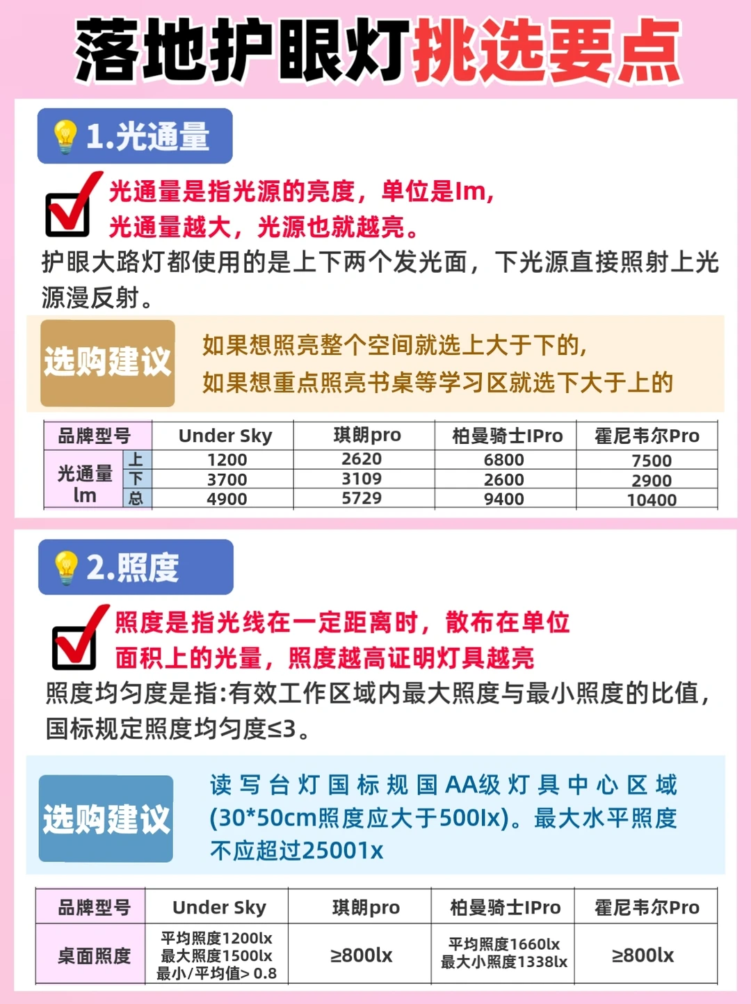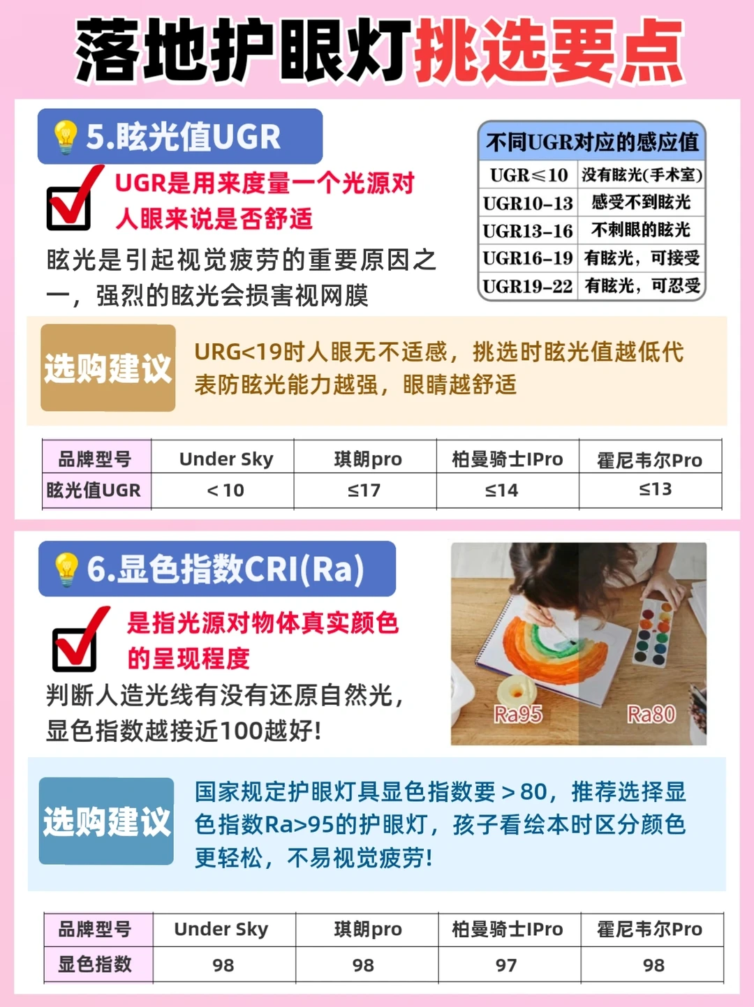 我发现很多新手爸妈在给孩子买护眼灯的时候只看价格、颜值、品牌,而真正忽略了专业的参数,如光通量、照度、频闪、蓝光、眩光值、显色指数等等,这些才是选对护眼灯的关键‼️