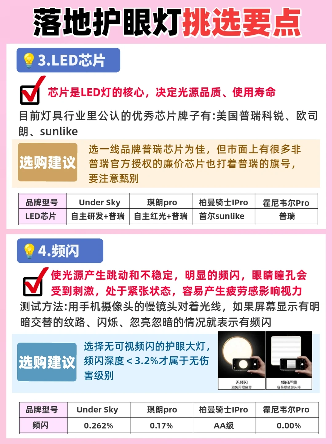 🔸频闪: 建议选择无可视频闪的护眼大灯