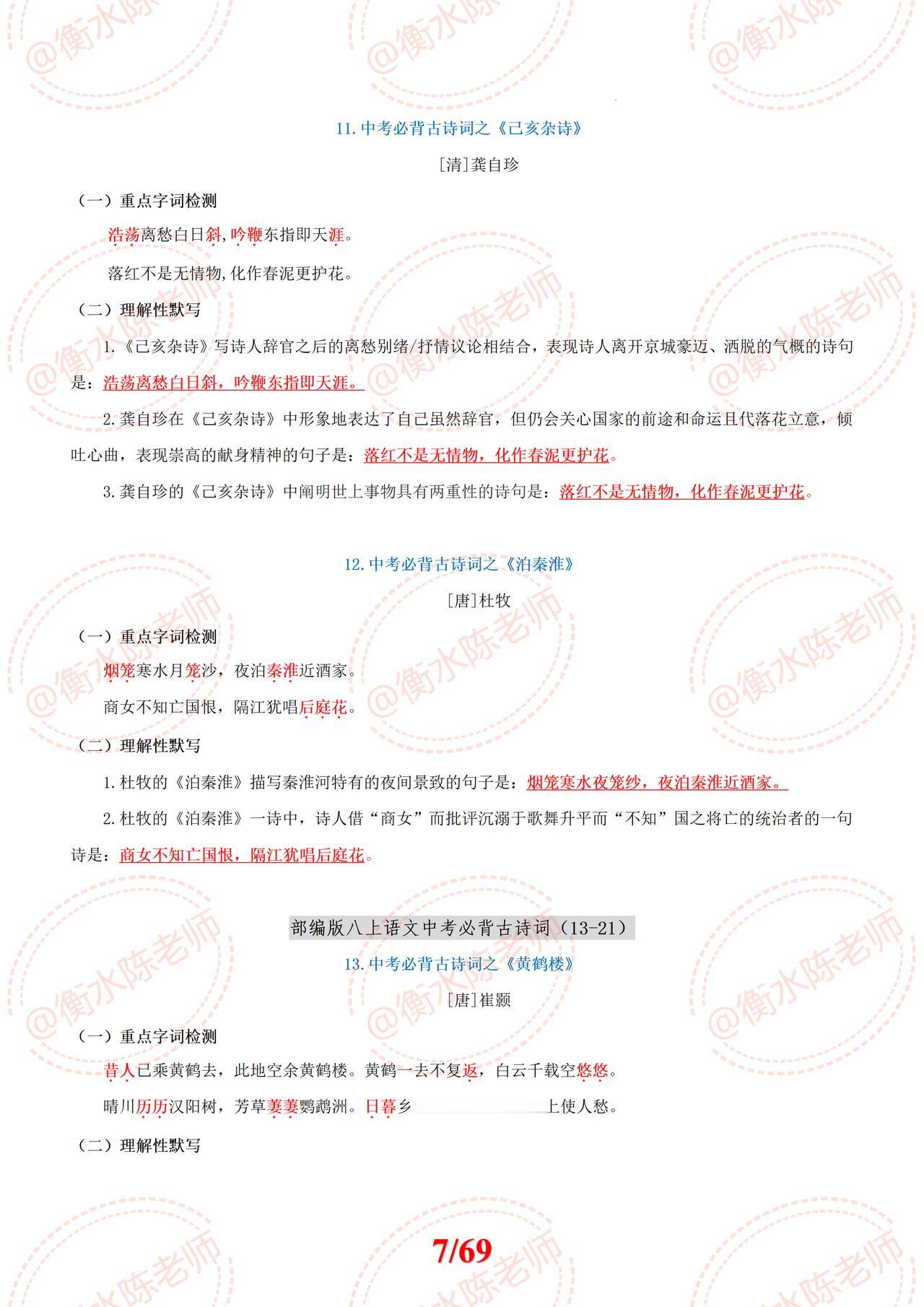 2024年中考语文第一轮复习,有关【古诗文默写】近10年来,考试次数,出现错误极多的热点考题,提前发给同学们,按照不同的城市、版本,中考考试大纲编写的,语文成绩比较差的考生,按照专题提前复习哦,让你中考考试中,少走弯路,多考分数。 初三的学生,这大半年来,很关键,面临着考高中的压力,每年我们的中考押题卷,输送很多学生进入高中,让毕业班的学生不再迷茫,不再没有高中上,目前2024中考一轮复习专题,正在陆续编写中,想要获取的考生,可以和我沟通哦,让你升学中,走更少的弯路,考更多的分数哦。