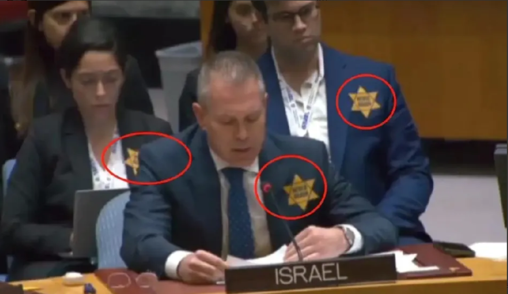 天狂有雨、人狂有祸!做事别太绝,做人别太过!10月30日,以色列常驻联合国代表埃尔丹在联合国大会上佩戴上一颗黄星,埃尔丹挑衅性地表示,只要安理会不谴责哈马斯的“残暴行为”,他就会自豪地佩戴黄星。 据报道,这种黄星是二战时期德国纳粹强迫犹太人佩戴的一种标识,黄星上面刻有“再也不会(Never again)”。 近日来,埃尔丹三番五次大闹联合国,扬言让联合国秘书长古特雷斯不道歉便辞职,叫嚣联合国已没有存在的必要,简直是目空一切、猖狂至极。埃尔丹的种种表现让人联想到,这或许就是历史上犹太人被四次大屠戮的真正原因!