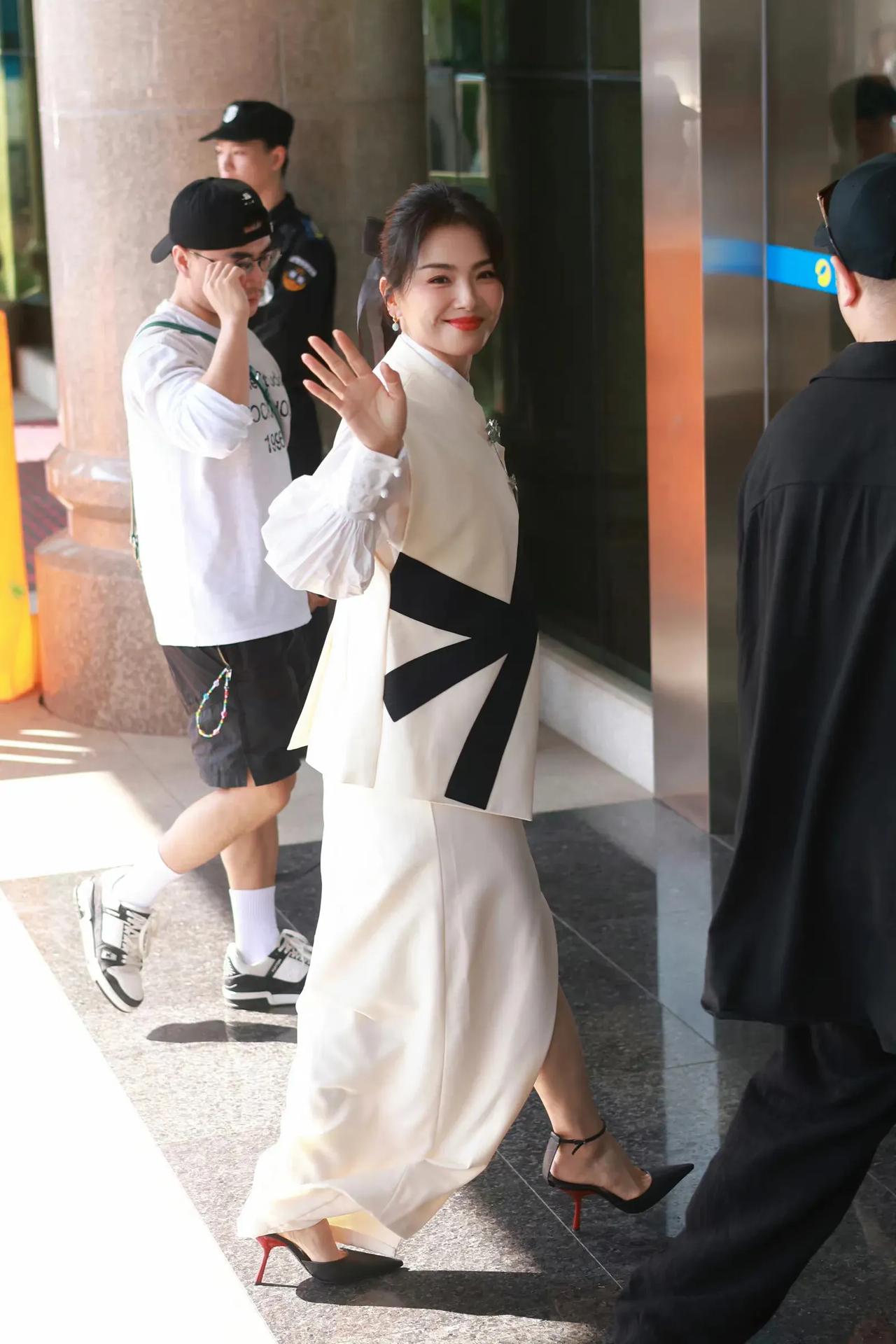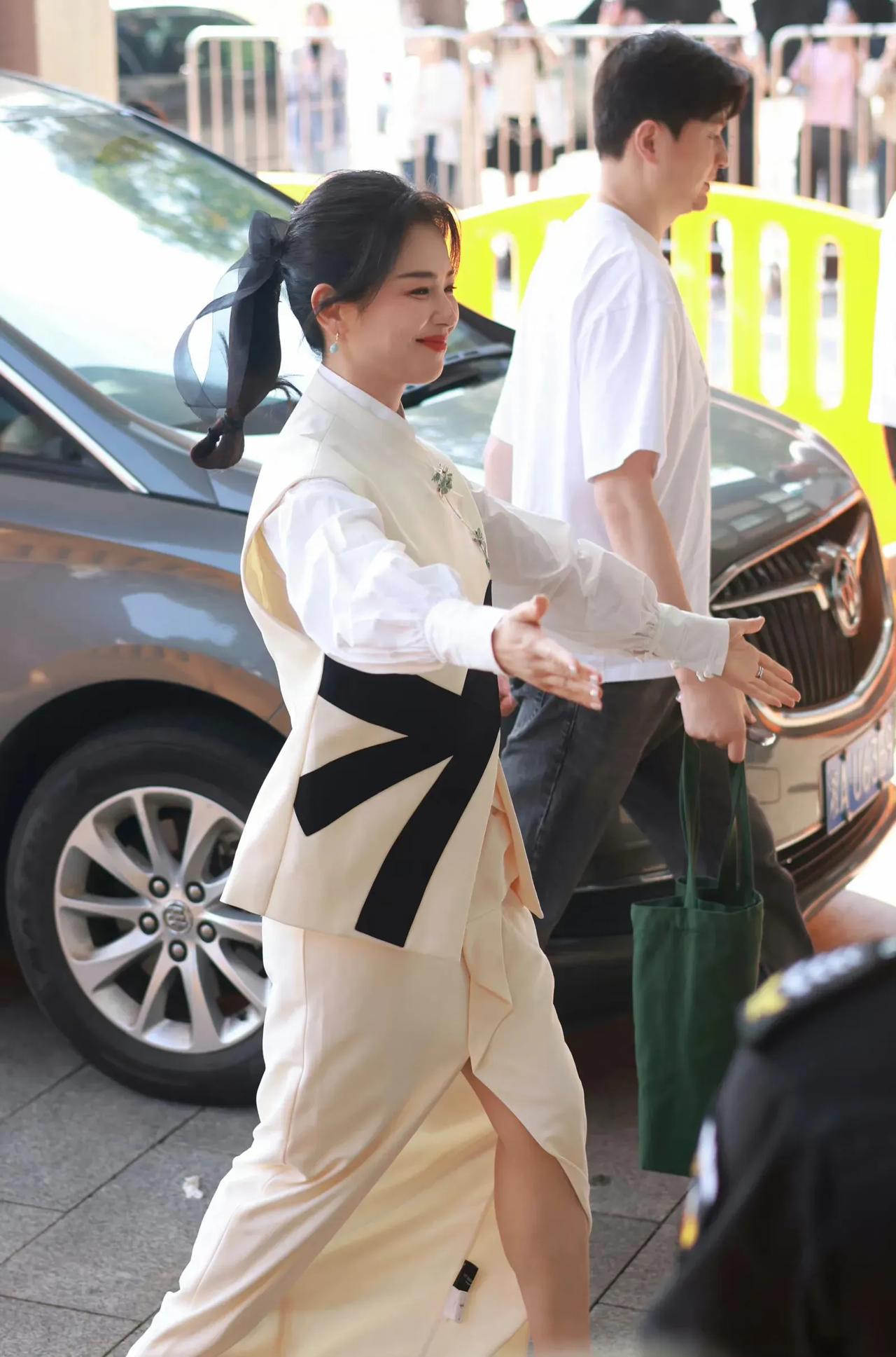 哎呀呀,刘涛这是穿了个啥!白色衬衫配米白色马甲,还有一个黑色蝴蝶结,是把自己包装成礼物盒子了吗? 刘涛真的好年轻呀,一点都不像中年人,穿衣搭配也是时髦醒目,温柔的米白色国风马甲,衬得她身体空空荡荡的,像是瘦了很多。 踩一双尖头高跟鞋,显得双腿很细,大概是拍照角度问题,这里的刘涛显得不够高挑,有点显矮! #秋日生活打卡季#