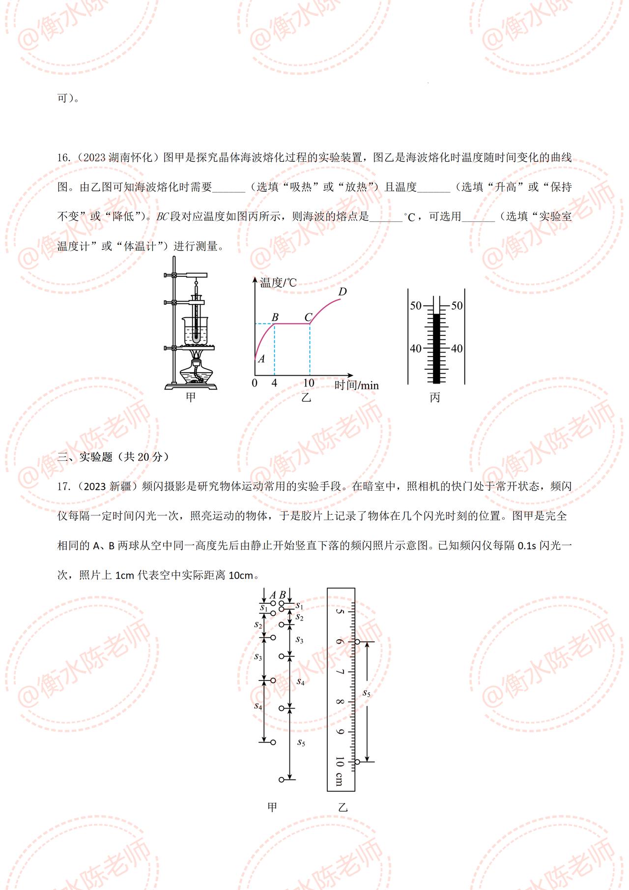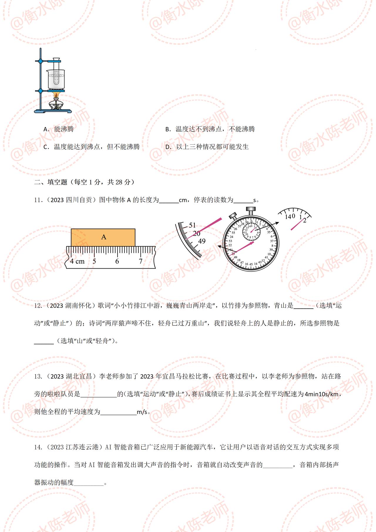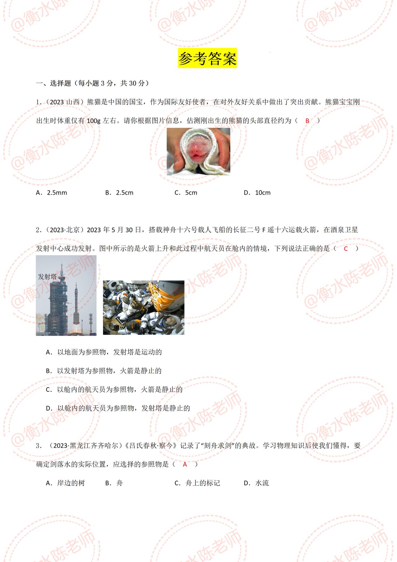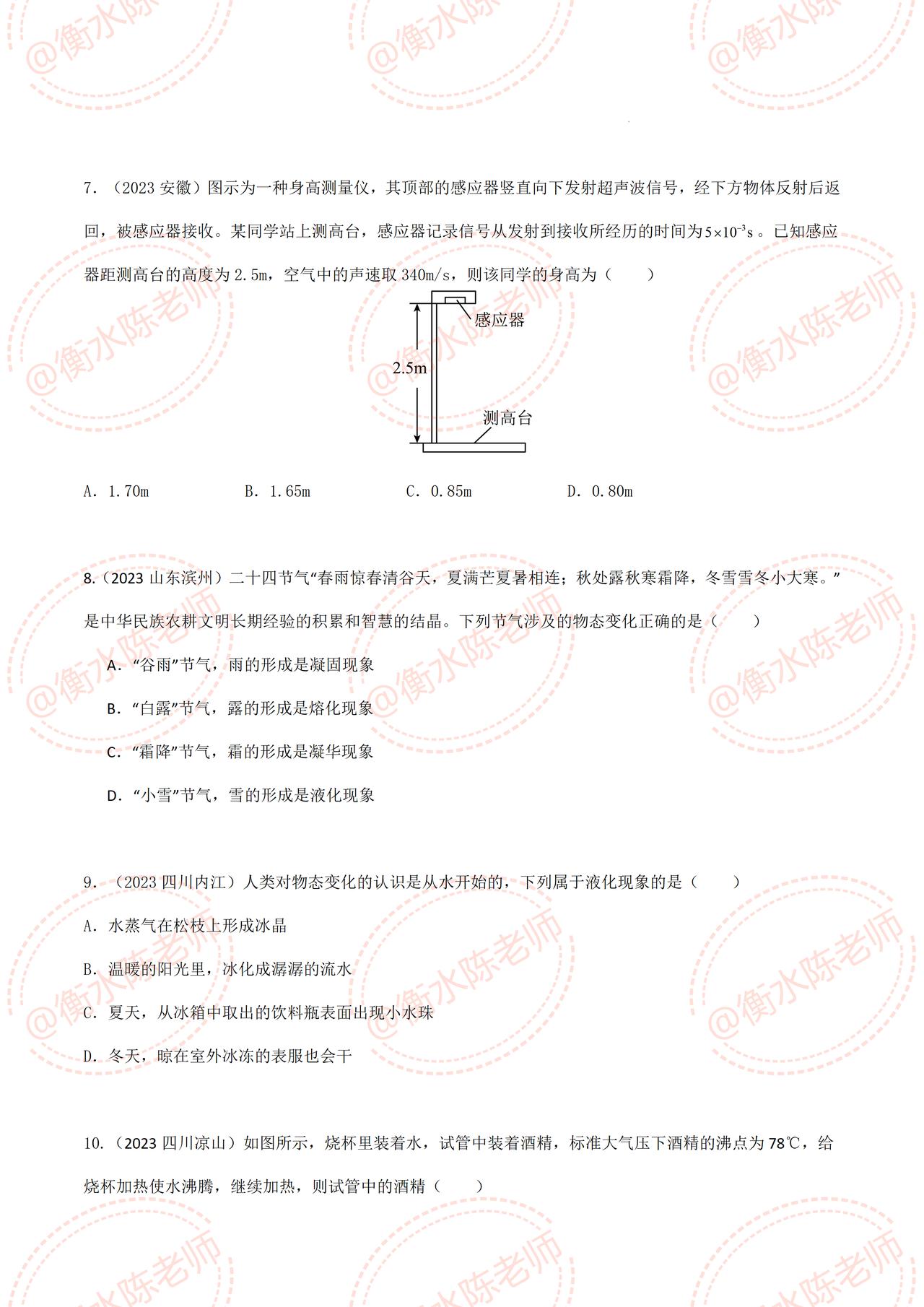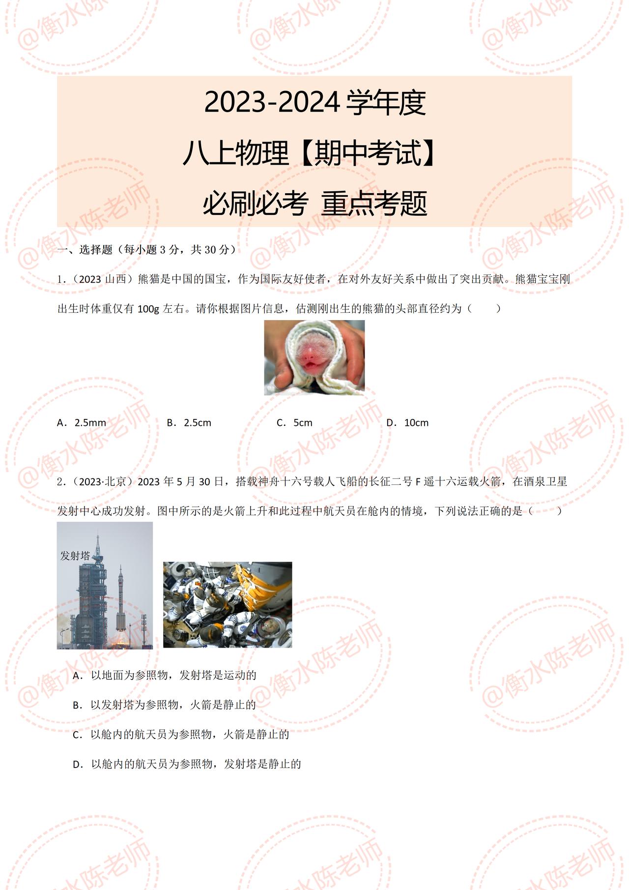 初二上学期物理,期中考试必出热点考题,根据不同的城市、学校考试重点编写的,想要获