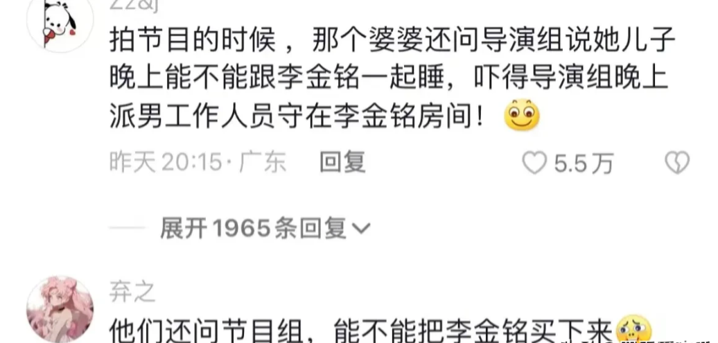 晕!这也太可怕了吧!!! 当时的她到底是怎么坚持录完节目的! 这几天有关李金铭在乡村录节目的事件又出现了。 原来这个事情这么吓人! 节目中,李金铭嫁进的那一家人,把她14年吃剩的饭留到现在,结束了还不让她走,偷留护照,还让她和自己的儿子睡一起!真当成自己的儿媳了呀! 直到现在头像还用和李金铭一起拍的照片,一直发有关李金铭的事情。 到现在李金铭都未婚,这是有阴影了呀! 要是普通人可能真的就留那给人家当老婆了 想想就可怕 好心疼她,还因为这一家缺席了花少的录制。