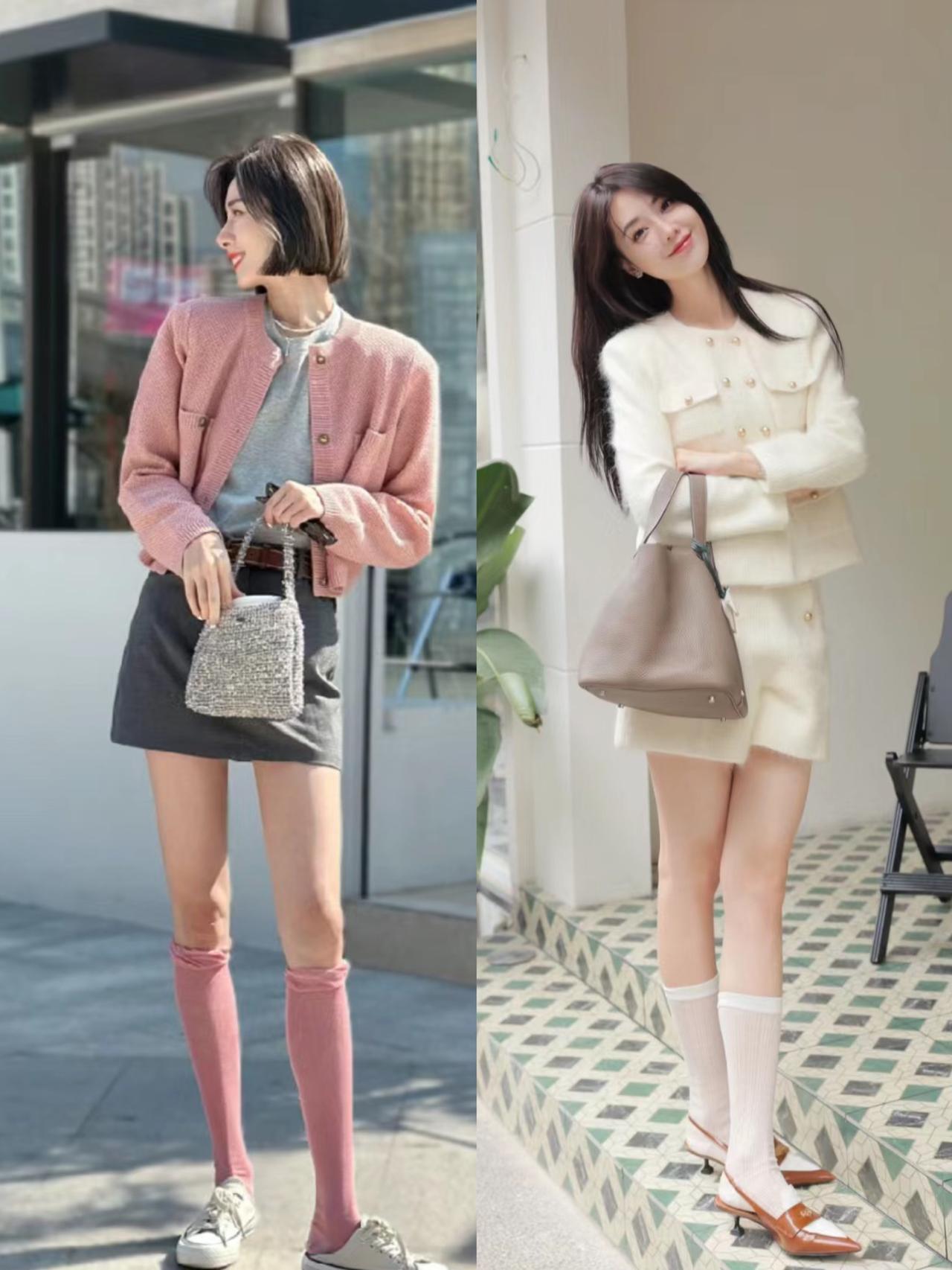 当深秋撞上“中筒袜”,果然是时髦显瘦又保暖,太适合小个子了! 深秋季节,可以选择保暖显瘦不臃肿的中筒袜,小个子选择膝盖下方的小腿袜,高个子选择过膝的长筒袜。高弹压力的中筒袜更显瘦,不同的花色和搭配方式都可以呈现出不同的时尚感。搭配毛衣+A字形半身裙+中筒袜、卫衣+百褶裙+中筒袜、小香风外套+紧身裙+中筒袜和中筒袜+乐福鞋都很时尚。