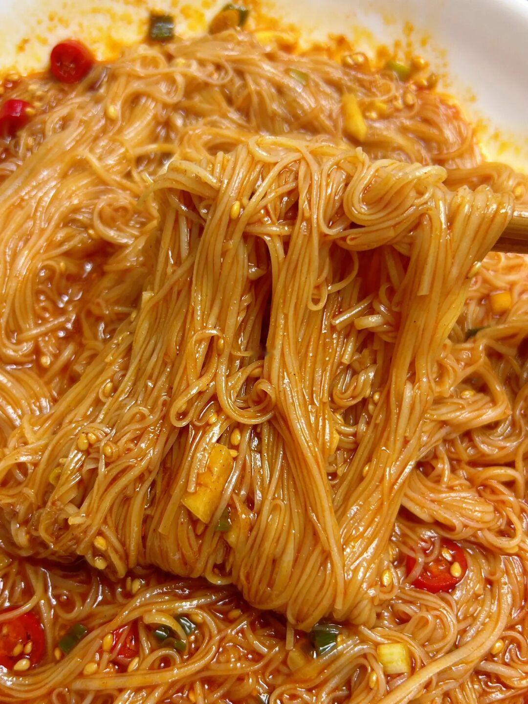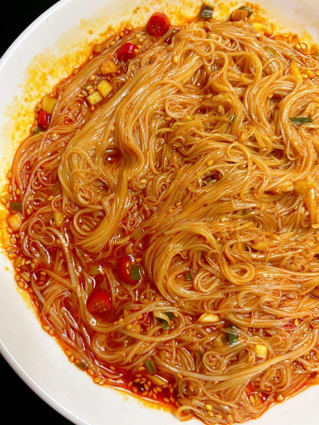 这个懒人拌面 简单又好吃!!! 1⃣️先来调个料汁:碗里加入蒜末、辣椒粉、小米辣、葱花,浇上热油,再加入1勺生抽、1勺蚝油、半勺盐、1勺白糖、1勺香醋 2⃣️煮面,煮熟后捞出过一下凉水装盘,倒入料汁拌匀 完成✅