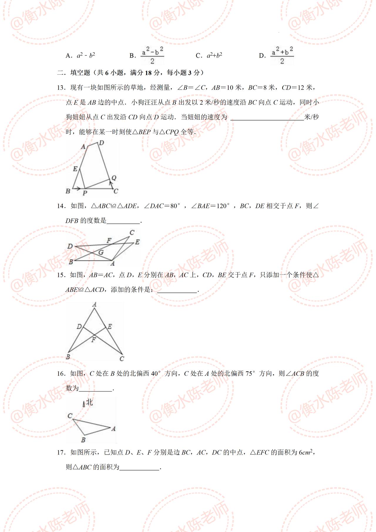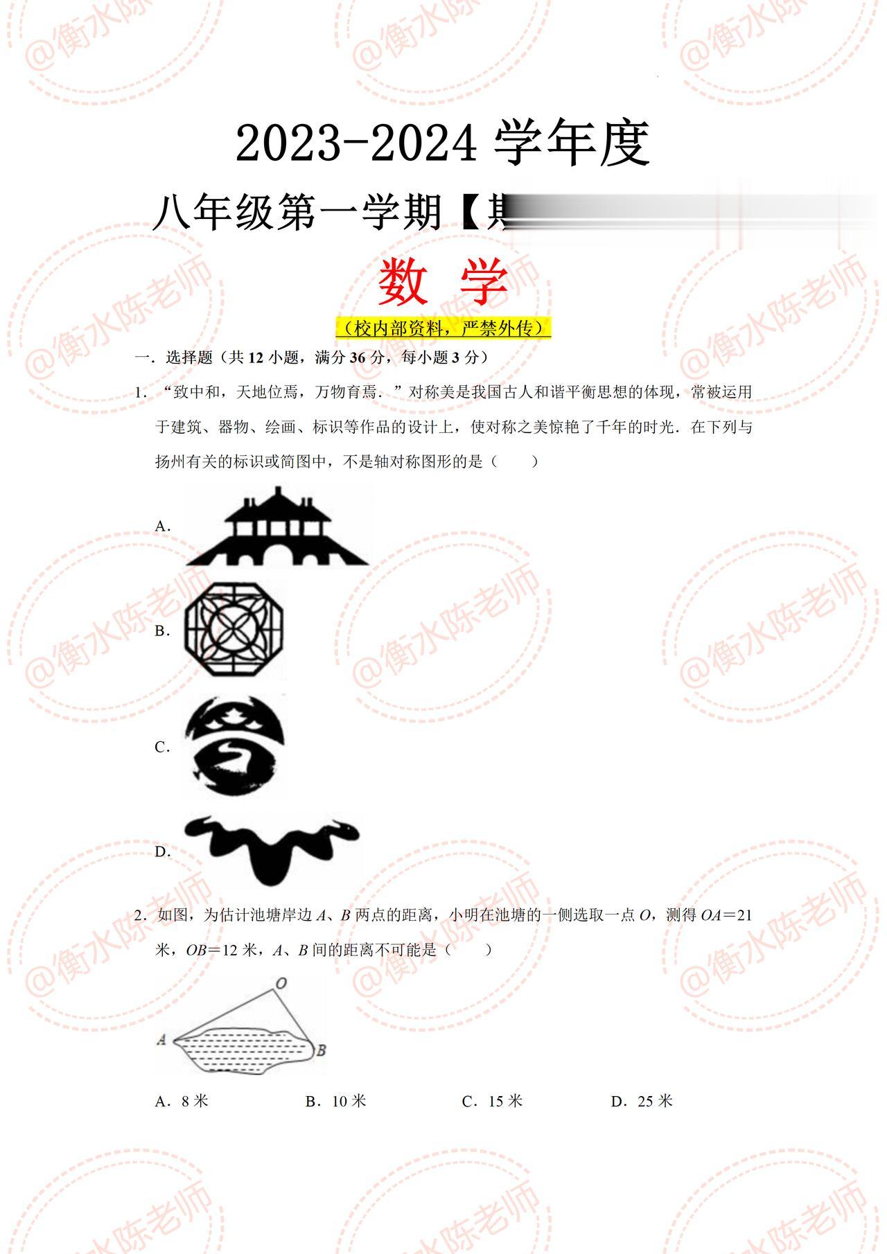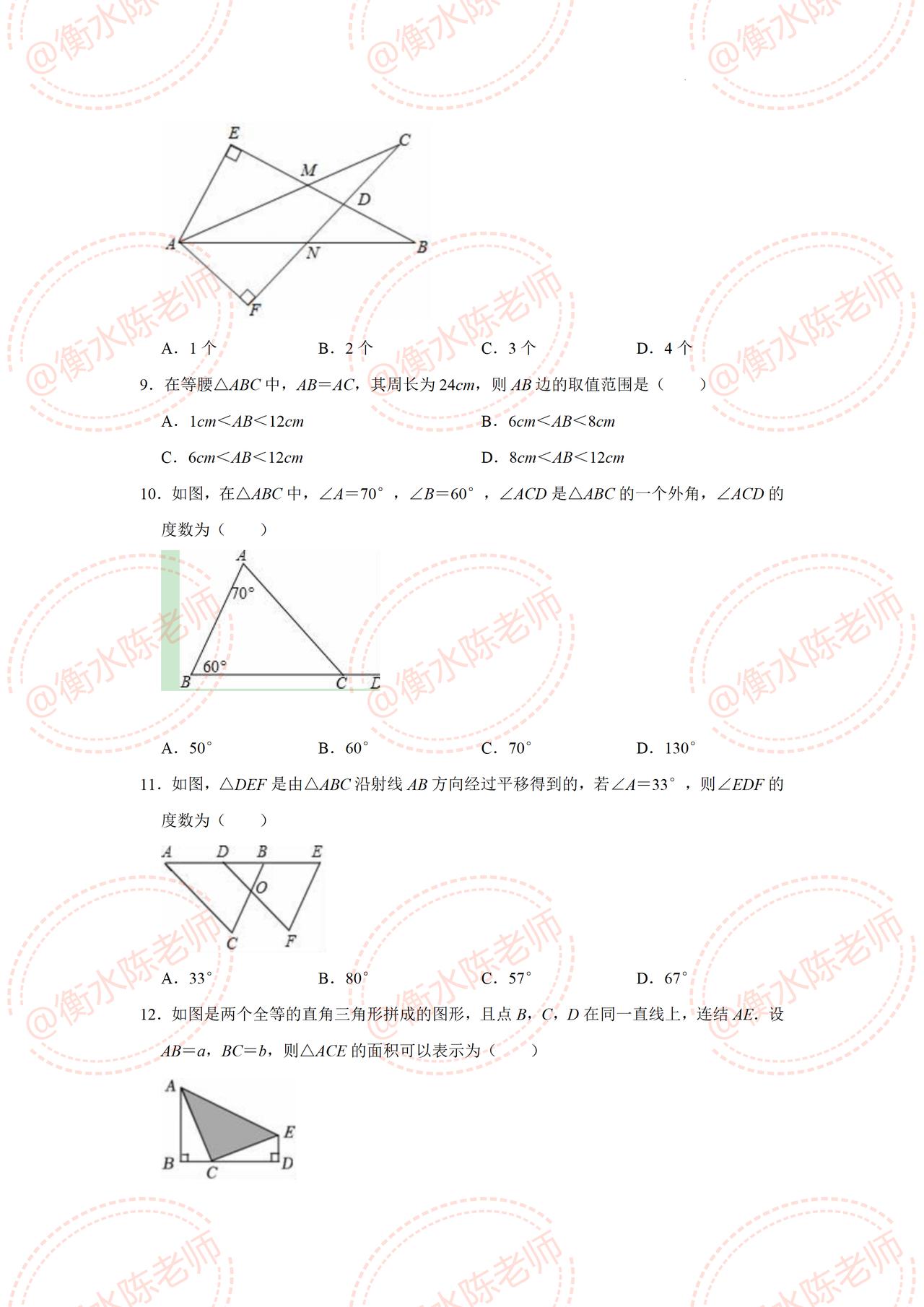 八年级上学期数学,期中考试必出热点考题,月考没考好的,这次期中要好好做一遍哦,考题都是根据不同的城市编写的,考之前记得和我沟通一下哦,考试让你少走弯路,多考分数哦。