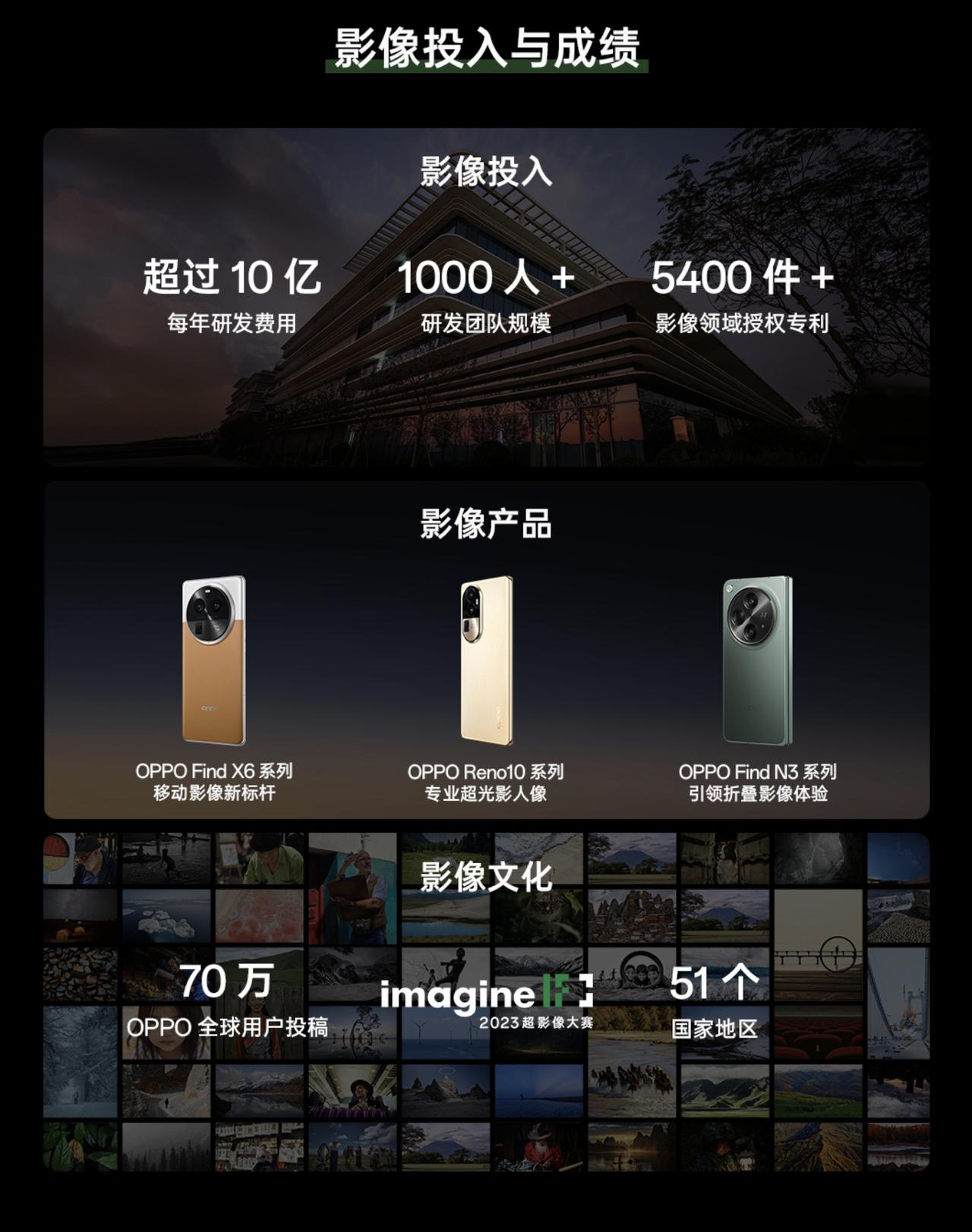 顶级旗舰终于官宣了?在2023巴黎国际摄影艺术展上,OPPO官宣了新一代超光影影像系统,并表示将会由下一代旗舰OPPO Find X7系列首发,目前Find X6系列的旗舰就相当能打了,看来OPPO又要登上新影像巅峰了啊! 之所以OPPO能够在影像方面取得优秀的成绩,与其巨大的资金、人力投入是分不开的,通过数据可以看出,OPPO每年在影像方面的研发投入就超过了10亿元,研发团队规模更是达到1000人以上,至今共获得了超5400件影像专利,相当优秀。 而且这次在会上,OPPO更是高调地表示:OPPO的专业哈苏人像摄影领先行业三年!其中与超光影影像系统也是分不开的,OPPO人像摄影主要有三大特点:光影、色彩和空间,通过硬件配置+摄影算法结合,能帮助用户拍出更有质感的人像照。也难怪网上一直都有很多人说,拍人像还得看OPPO~