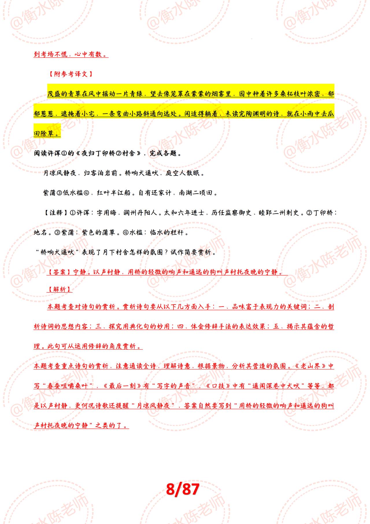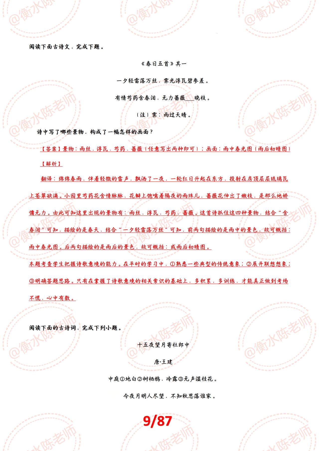 大家好,今天我们来聊一聊中考语文中古诗词鉴赏这一让很多同学头疼的题型。其实,只要掌握了一定的答题技巧和提分方法,古诗词鉴赏并不难。下面,就让我们一起来探讨一下中考语文古诗词鉴赏的答题模板和提分技巧吧! 一、了解题型 首先,我们要了解古诗词鉴赏的题型和特点。一般来说,古诗词鉴赏的题型包括选择题、填空题、简答题等。其中,选择题主要考察学生对古诗词的基本理解和对作者情感的把握;填空题则主要考察学生对古诗词名句的记忆和对作者、作品等信息的了解;简答题则更加灵活,可以考察学生对古诗词的深入理解和分析。 二、答题技巧 接下来,我们来看看如何答题。首先,我们要认真阅读题目,了解题目要求和考察的内容。然后,我们要认真阅读古诗词原文,了解诗歌的主题、情感、语言特点等。在答题时,我们可以按照以下步骤进行: 抓住关键词句,理解古诗词的意思和主题。 分析作者的情感和思想,把握诗歌的深层含义。 注意诗歌的语言特点,如修辞手法、表现手法等。 结合题目要求,组织答案。 三、提分技巧 要想在古诗词鉴赏中取得高分,除了掌握基本的答题技巧外,还需要注意以下几点提分技巧: 积累基础知识:古诗词鉴赏需要一定的基础知识,如古代文化常识、诗歌流派、表现手法等。因此,在平时的学习中要注意积累相关知识。 练习审题能力:在考试中,审题能力至关重要。我们要学会从题目中获取关键信息,明确考察内容和要求。 提高阅读速度:在考试时间有限的情况下,提高阅读速度非常重要。我们要学会快速浏览全文,抓住关键词句进行分析。