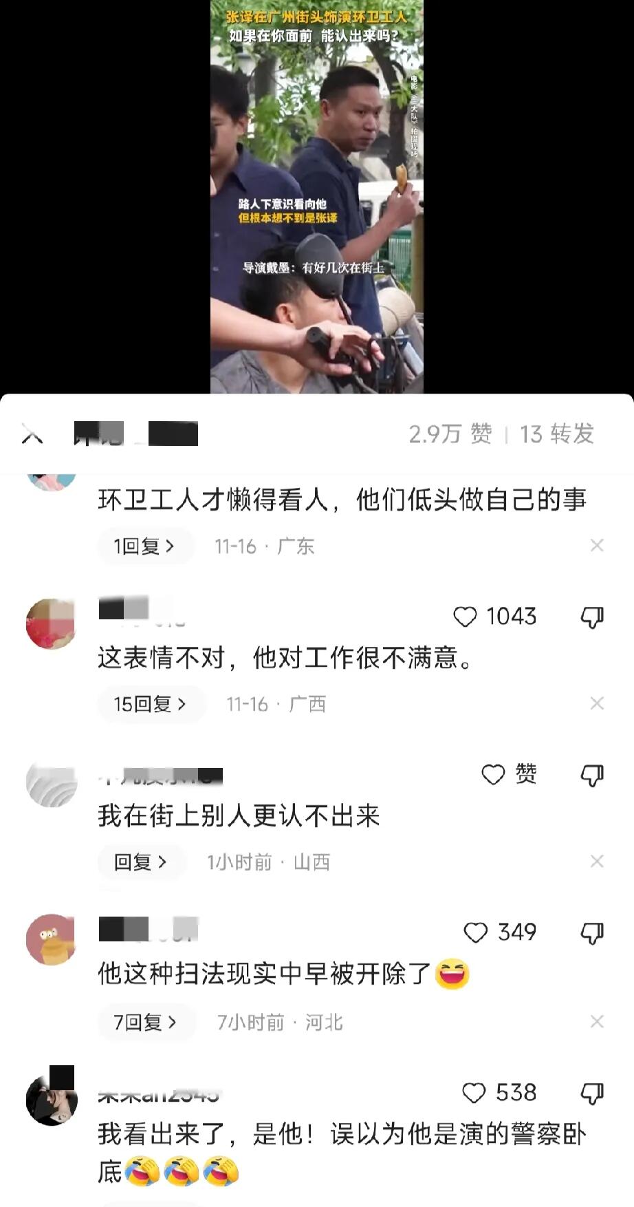张译在广州街头饰演环卫工人,遭到网友一致差评。