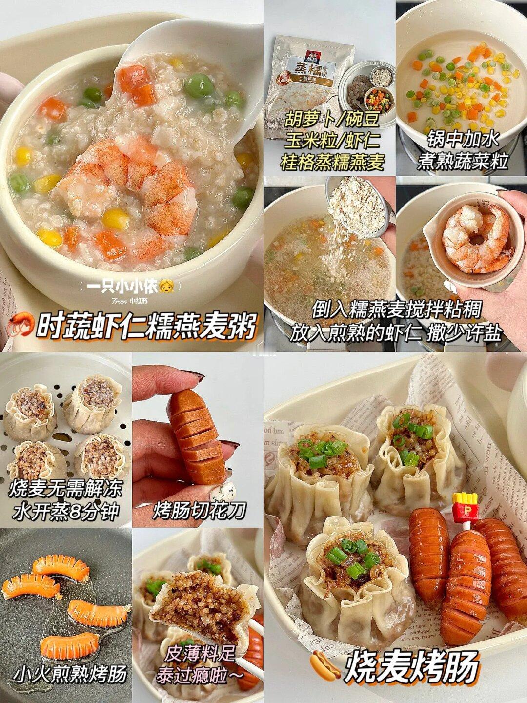 DAY 6:时蔬虾仁糯燕麦粥&烧卖烤肠
