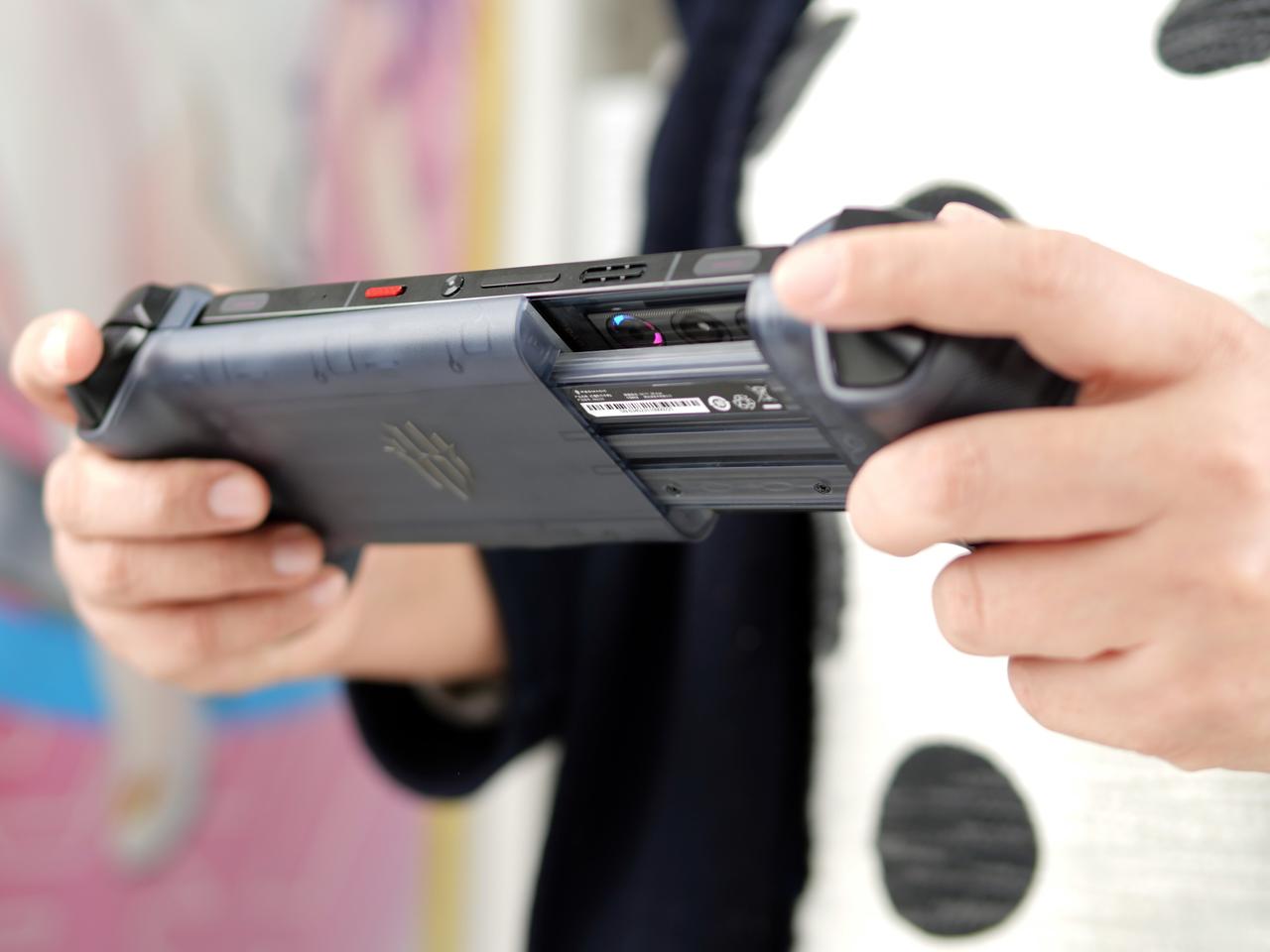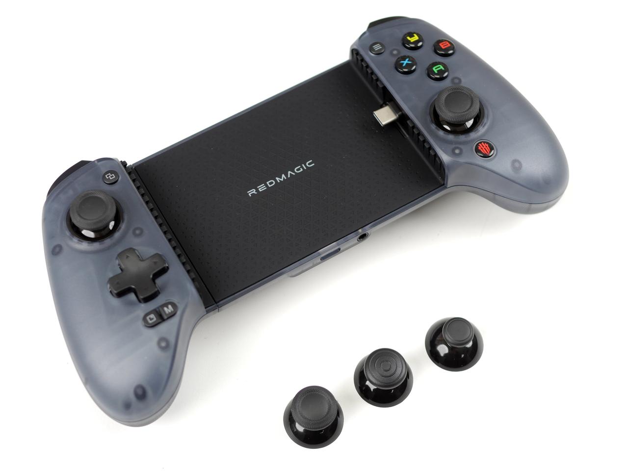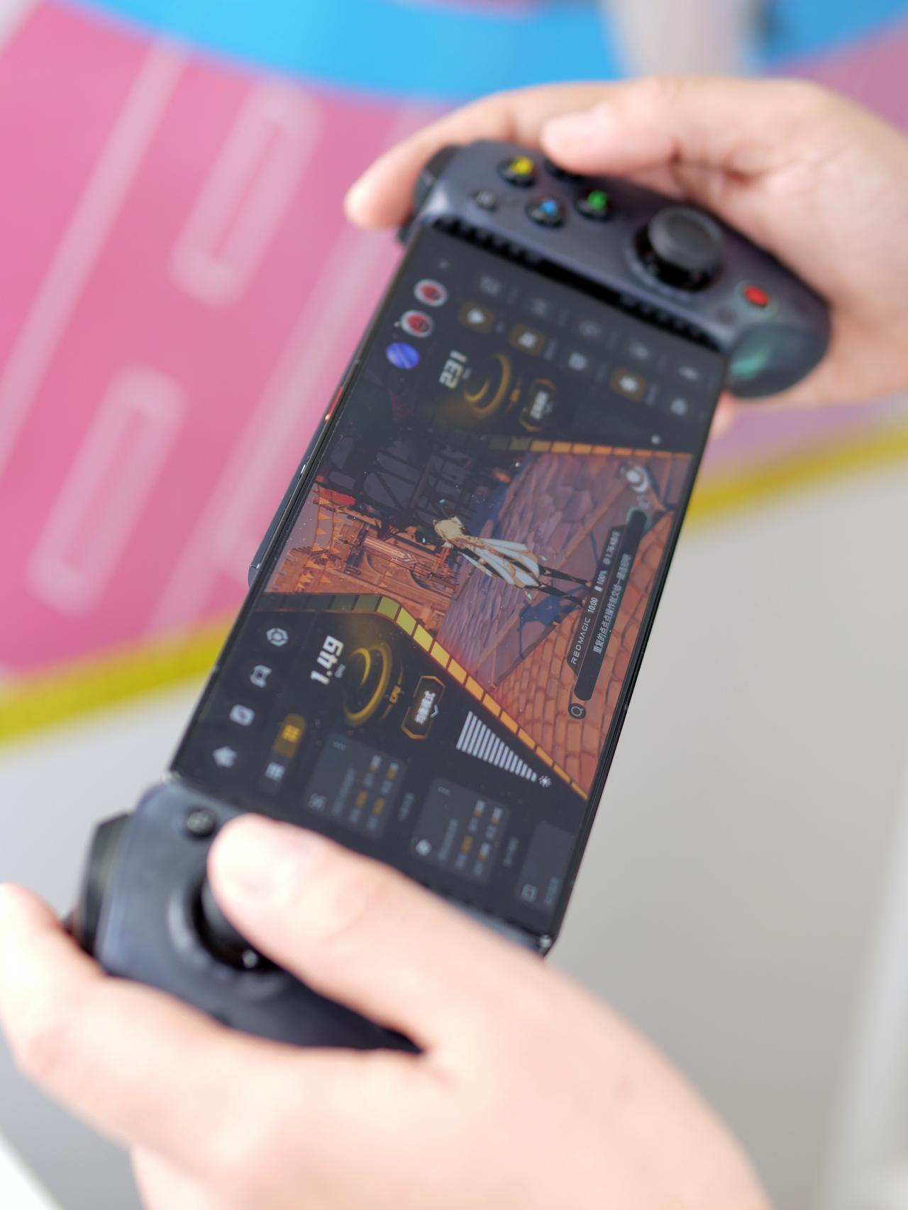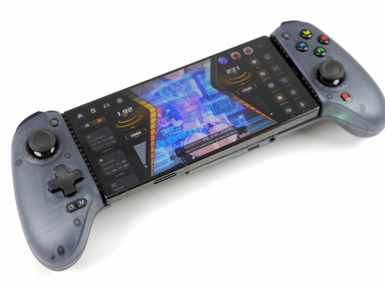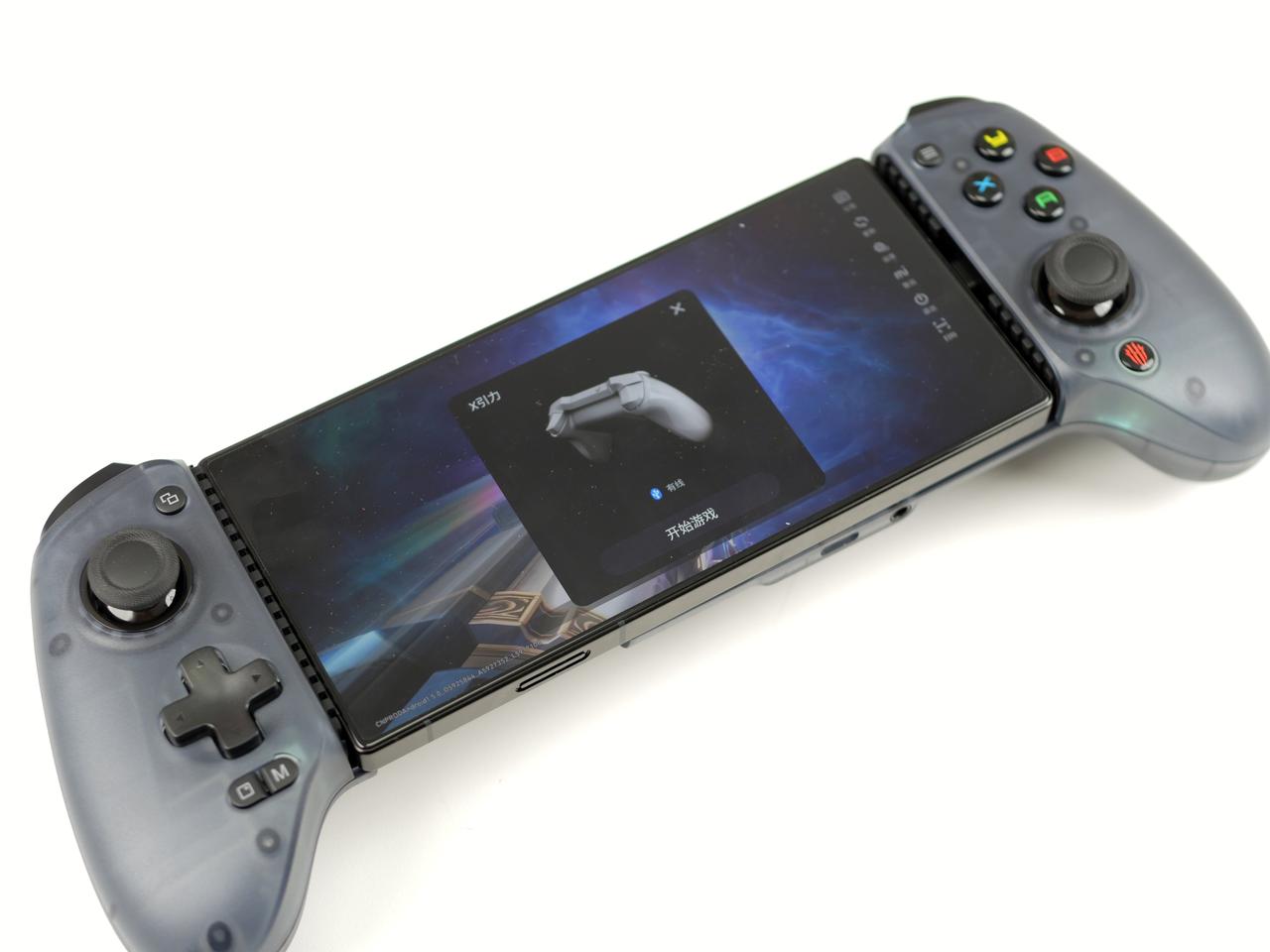红魔影刃2游戏手柄,手机看过了就干脆来直接看这个附件吧,它也是从属于红魔X引力平台的产品,主打的就是拓展性,让手游体验更好,但这代又升级了,直接加持掌机模式。 对比一代手柄,二代手柄整体进化得不止一点点,主要就是握持部分得到大幅度的升级,手感更稳定也更舒适,接上手机之后,更是与现在的Windows掌机或是骁龙G系列游戏平台的机器一毛一样。 说一代的时候就有朋友问兼容性,完全没问题。因为一代手柄现在被同事拿去在用,他就是很头疼曲面屏机器的误触,但又舍不得影像功能,后来从我这里把手柄毛走了,用得相当开心那种。 当然,体积上二代手柄就比一代要大得多,也因此没有了随身携带的收纳盒,但感觉对于游戏人群来说,游戏感的优先级显然是要高于便携性的,估计这也是红魔用户调研之后的结果,要做就做到极致嘛——但我觉得还是弄个好点。 我对于红魔做这种附件很认可,因为你本来就是专业游戏手机嘛,仪式感和玩得爽都很重要不是》