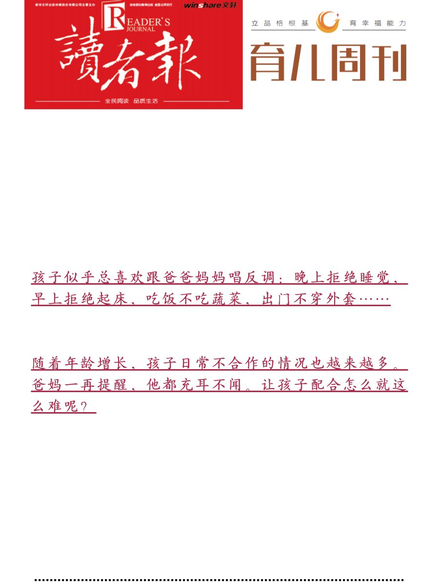 随着年龄增长,孩子日常不合作的情况也越来越多。爸妈一再提醒,他都充耳不闻。让孩子配合怎么就这么难呢?