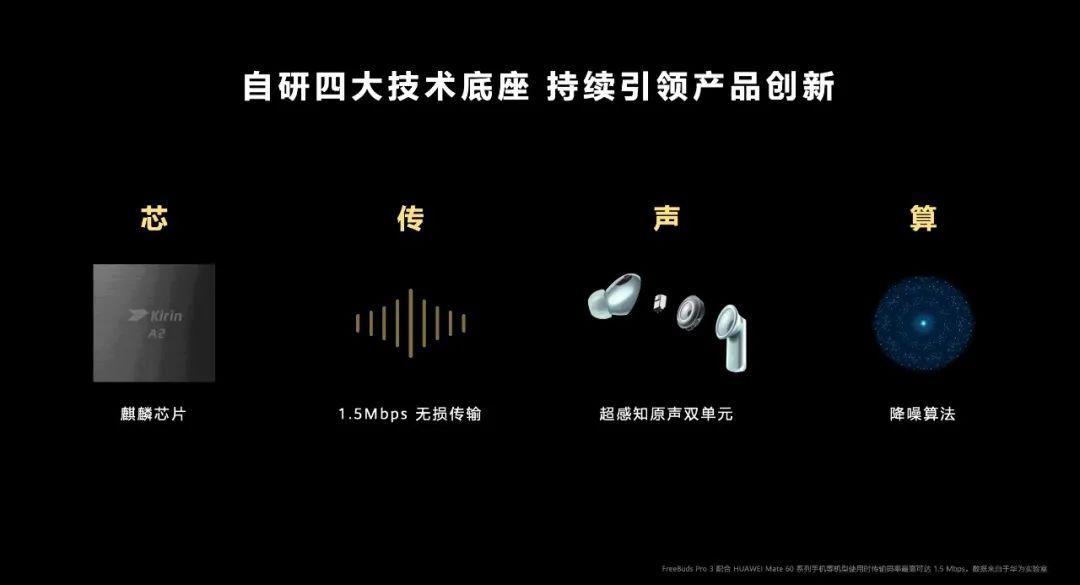 从玄学走向科学,用技术还原艺术 ,华为音频实现全链路无损生态 华为在2023年11月23日举行了2023年音频创新技术媒体沟通会,该公司在会上展示了其强大的音频技术实力和信心。华为提出了“计算声学”的战略布局,其中包括L2HC 3.0传输协议、四磁体动圈+微平板高音双单元组合、自适应降噪能力的明显提升和高集成度的SIP封装等技术。此外,该公司还宣布推出麒麟A2芯片,该芯片的传输带宽比上一代芯片提升了4倍,最高达8Mbps的物理带宽,让L2HC传输协议的码率可以从2.0版本的960Kbps暴增50%以上,达到3.0版本的1.5Mbps,为音频的编解码带来更多数据量,是无损音频的前提。同时,麒麟A2在自身的算力、封装、功耗等方面也大幅度进化。