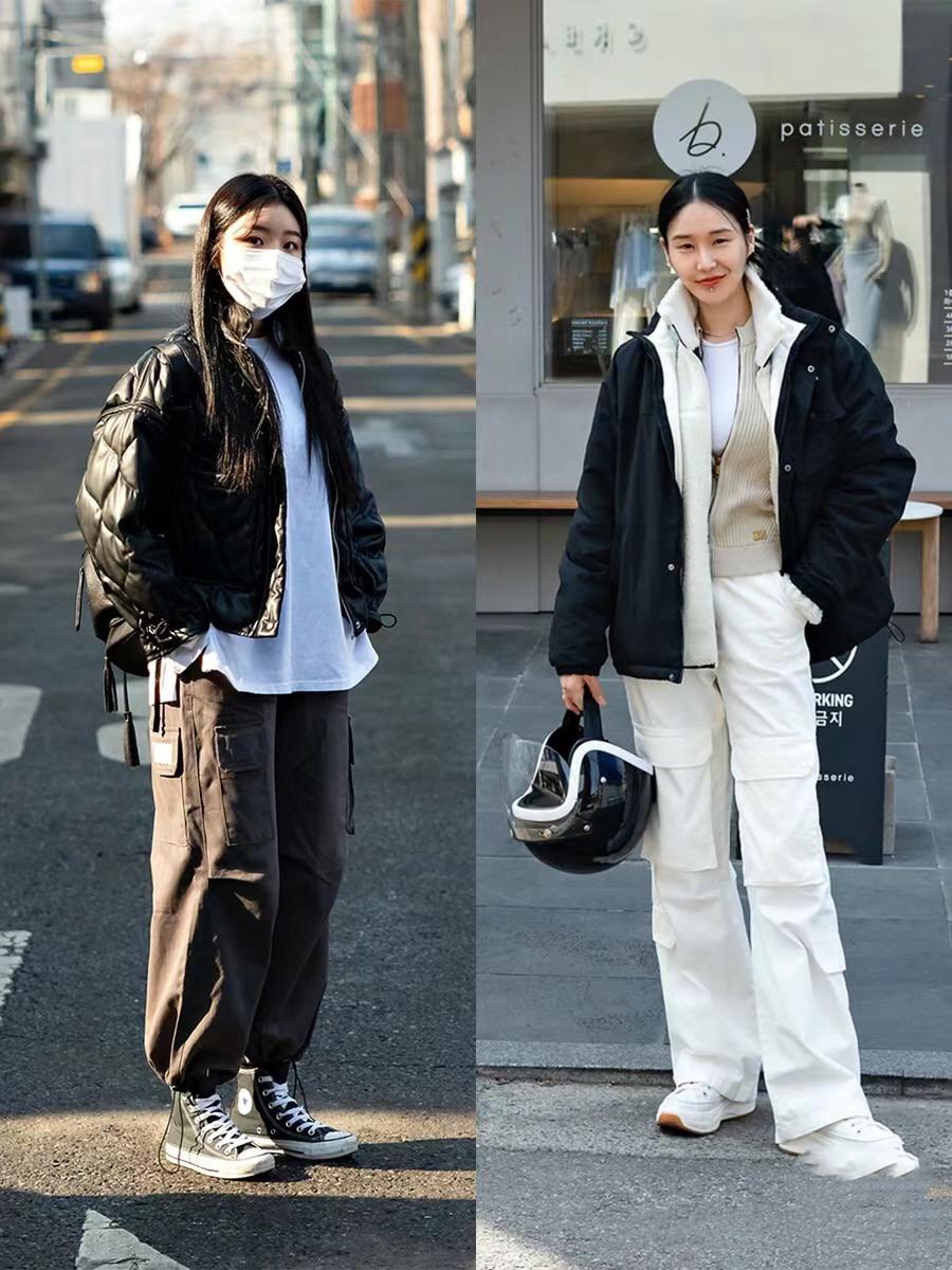 酷女孩必备“工装裤”,冬天这样穿帅气又保暖,回头率也太高了吧 工装裤是一种宽松的版型、口袋较多的裤子,具有包容性强、面料硬挺、个性鲜明等特点。可以搭配毛绒外套、短款棉服、皮衣外套等时尚单品,冬天也可以搭配厚底鞋、短靴等保暖单品。这种穿搭风格既帅气又时髦,适合做个酷酷的女孩子。