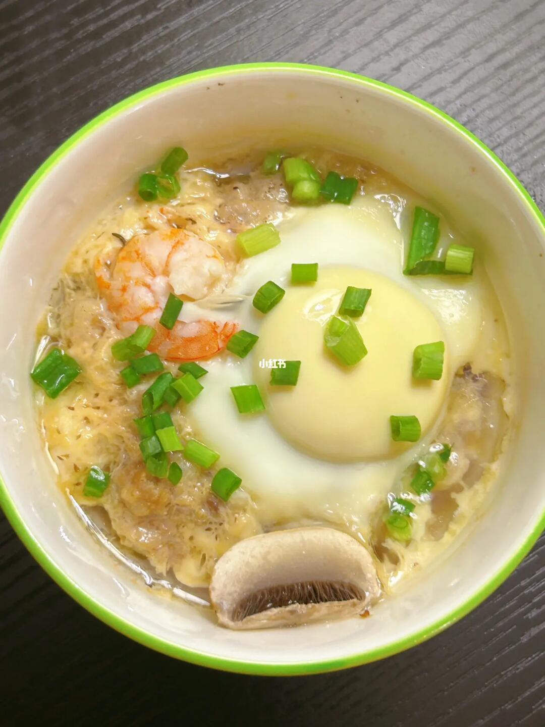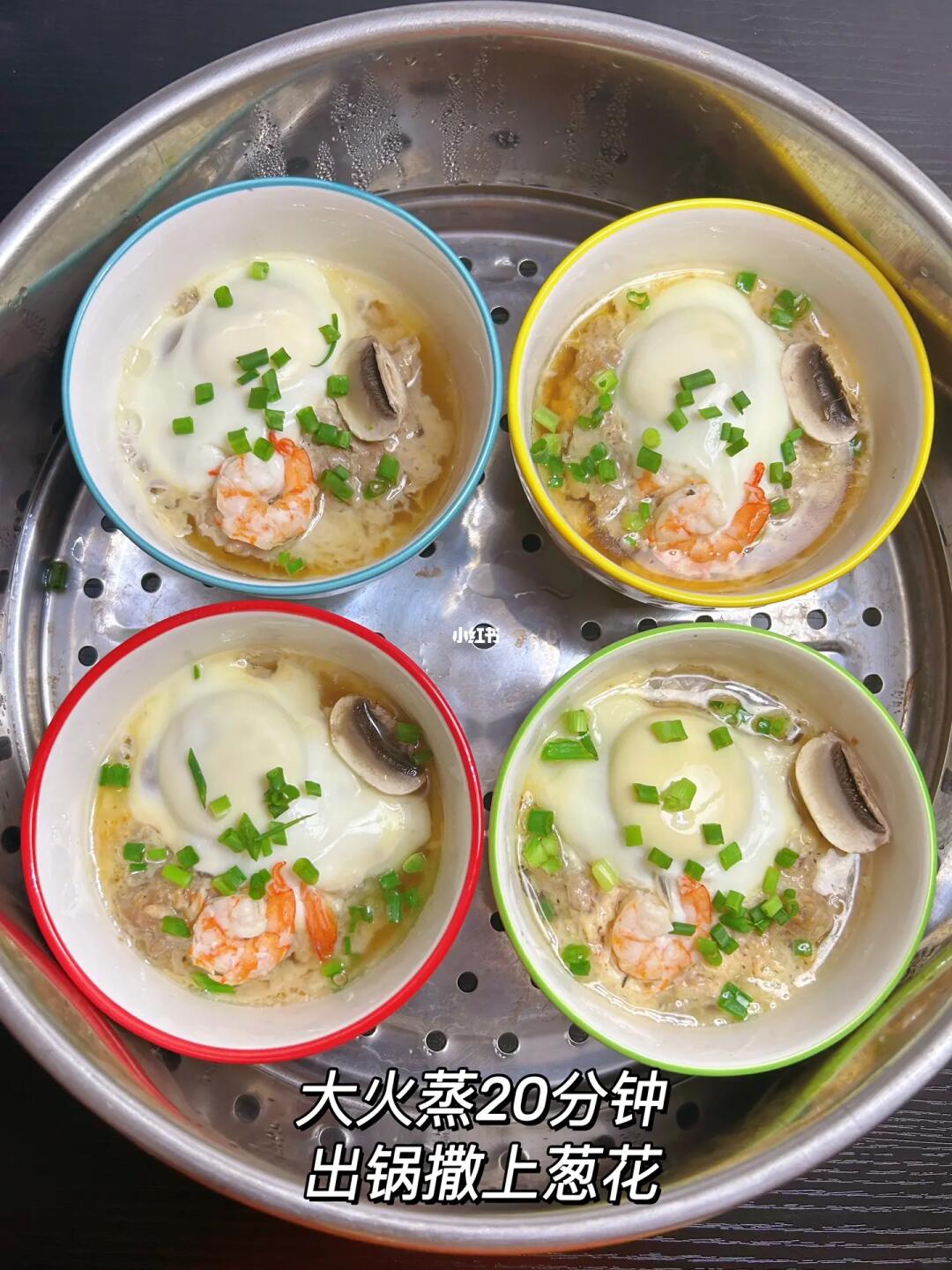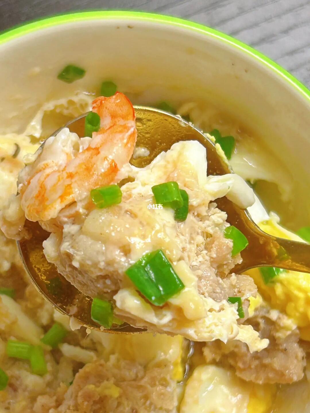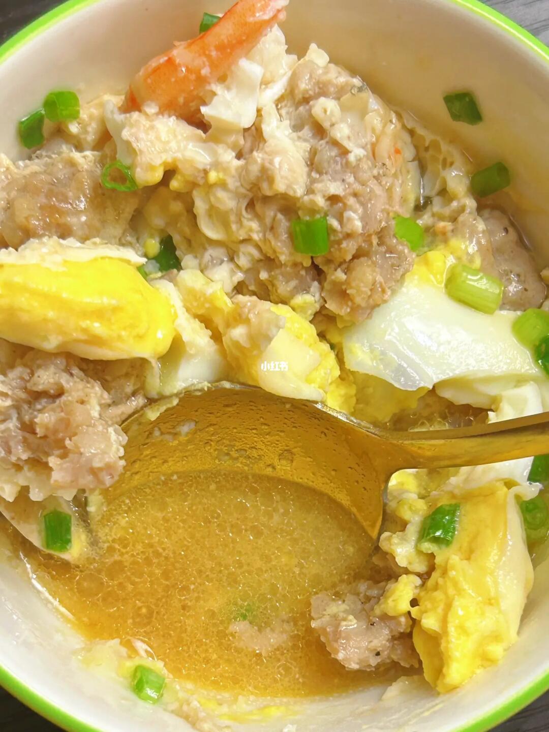 冬天就适合喝热乎乎的汤 这个肉饼汤营养又好喝!! 1⃣️肉末里加入1勺盐、1勺鸡精、1勺生抽、少许葱姜水、1勺花椒粉拌匀 2⃣️把肉末铺在碗底,加入鸡蛋、虾仁、口蘑,大火蒸20分钟,出锅撒上葱花 完成✅ 真的很香!! 一家人的量都有啦!!