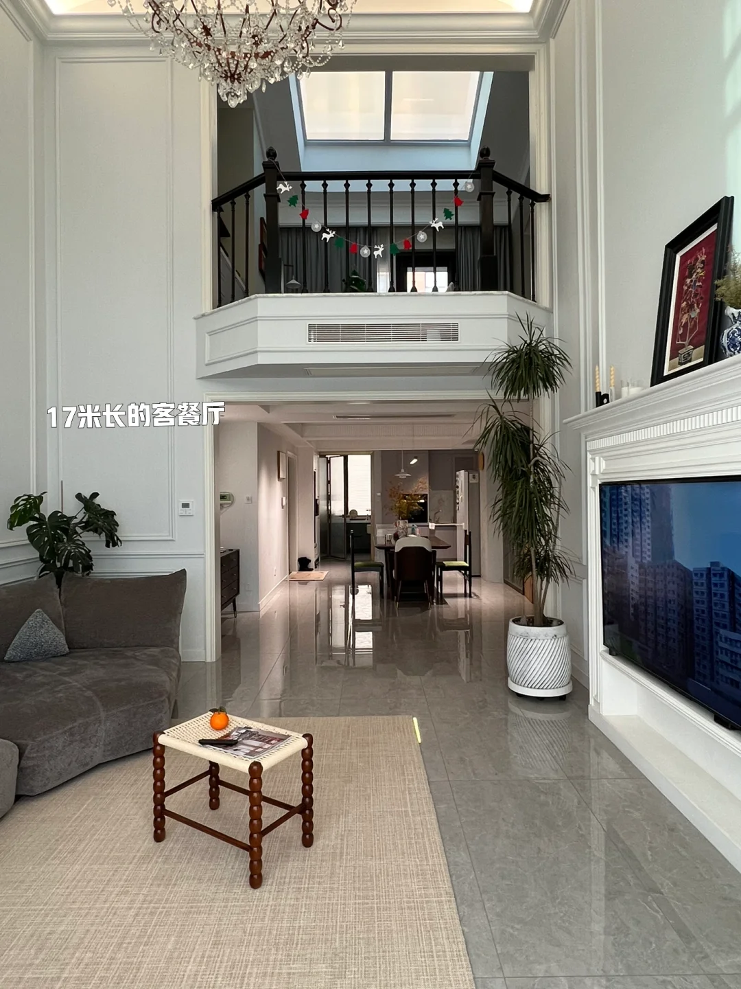 像是一楼的客厅到餐厅的距离17米