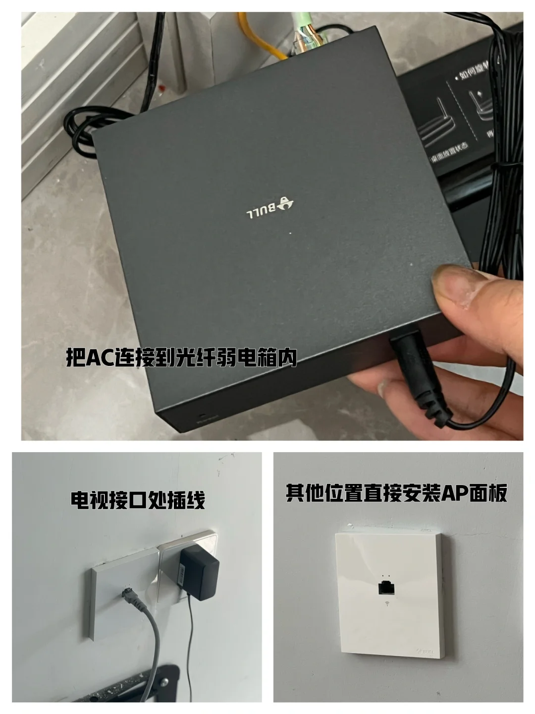 📶设备:一台公牛1200M Poe AC路由器 ➕三个AP面板 可以根据自家面积和房间数来增加AP面板数量