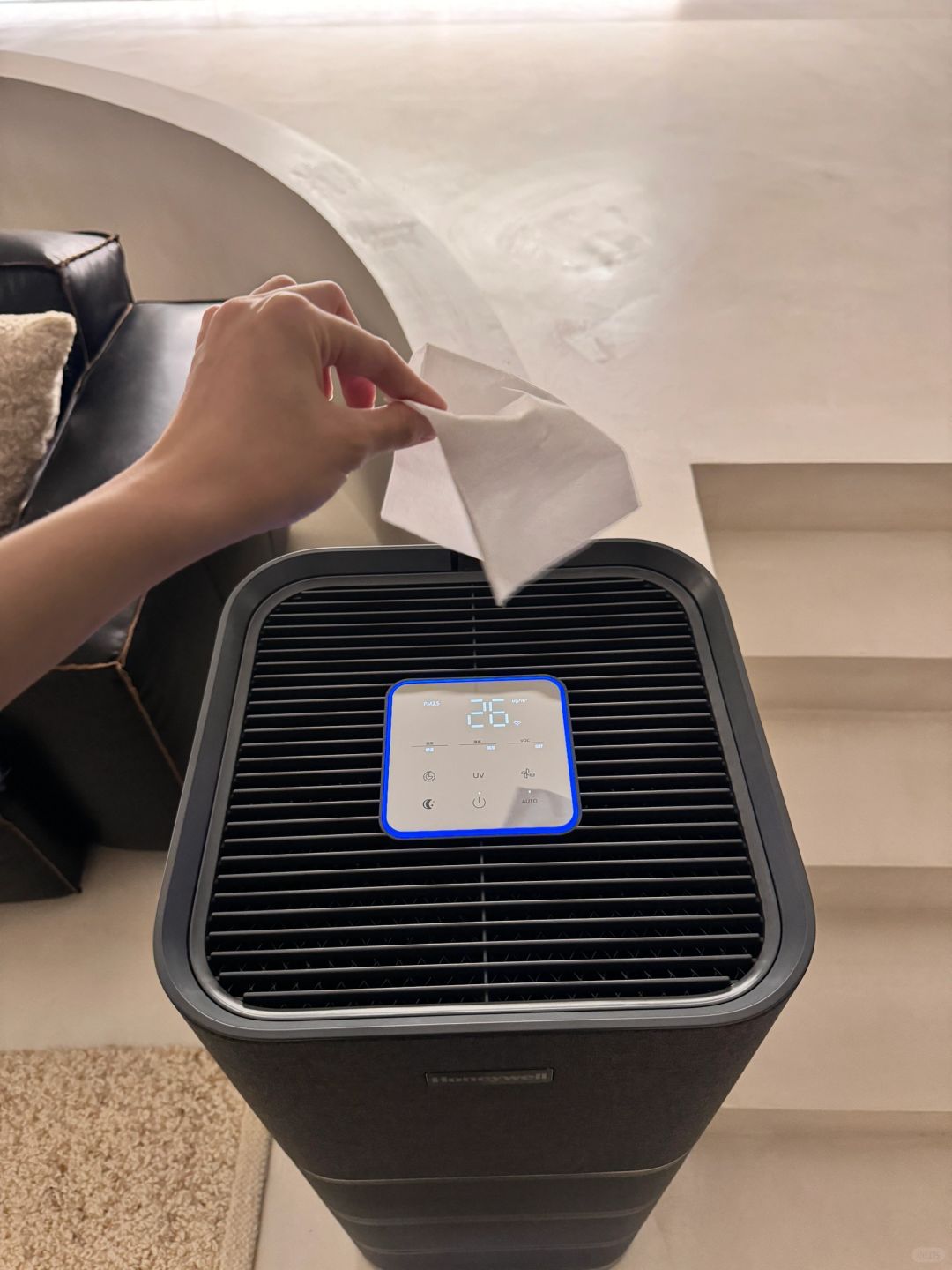 家里马上要有新成员啦 小宝宝的免疫力和鼻腔是非常脆弱的! 所以为了迎接新宝宝 我们早早的做好了准备 家里有一台高效的空气净化器是不能少的 不知道怎么选的朋友 可以参考我用了一段时间又来再次推荐的霍尼韦尔空间舱H-MAX . 大家都知道甲醛的释放是持续很久且无形的 这台净化器从我搬家就在用 它有强力的除醛功能 可以主动吸附分解甲醛 让我感觉非常安心 但一台好的空气净化器功能应该不仅可以除醛 还应该净化消du每日生活的室内空气 选择空气净化器 很重要的一点是看CARD值 简单的说就是洁净空气的输出率 数值越高代表净化效果更佳 为了获取更高的CARD值 市面上大多数万元级别用的是H12级滤网空气净化器 而霍尼韦尔H-MAX用的是H13级复合过滤网 过滤精度可以达到0.3微米 颗粒物CARD值依然高达1026.8 立方米/每时 尤其是有宠物的家庭 空气里难免有动物毛发、飞絮 灰尘 等大颗粒物、还有很多看不见的微小颗粒 对于宝宝或着其他脆弱敏敏的人群 空气净化器的过滤能力可太重要了! . 给家人的呵护 就要可靠 安全 好用~~ 霍尼韦尔H-MAX 的设计是360度四面进风的 可以多方位立体净化空气 塔式多层滤网可以调节 适应多种空间 净化面积达70-120平米 平时我放在小卧室就可以少用一层滤网 节省空间 放客厅就可以全都用上 非常灵活 . H-MAX的小黑盒中有四根4W的UV杀jun灯管 可以消灭多种🦠和过min原 比一般的灯珠UV杀jun覆盖面更广更有效 而且有卫健委的消du机备案和国际三大机构的过m原认证 让人很有安全感 灯管藏在小黑盒里 开启后1小时就会自动关闭 平时有人在家使用也是安全的 - 霍尼韦尔H- MAX是体贴入微的空气管家 放在卧室一晚上用睡眠模式 也不会会有噪音 使用一段时间发现睡眠质量都提高了很多 ~ 舒适安全的环境准备就绪 开始期待新崽回家啦~ .