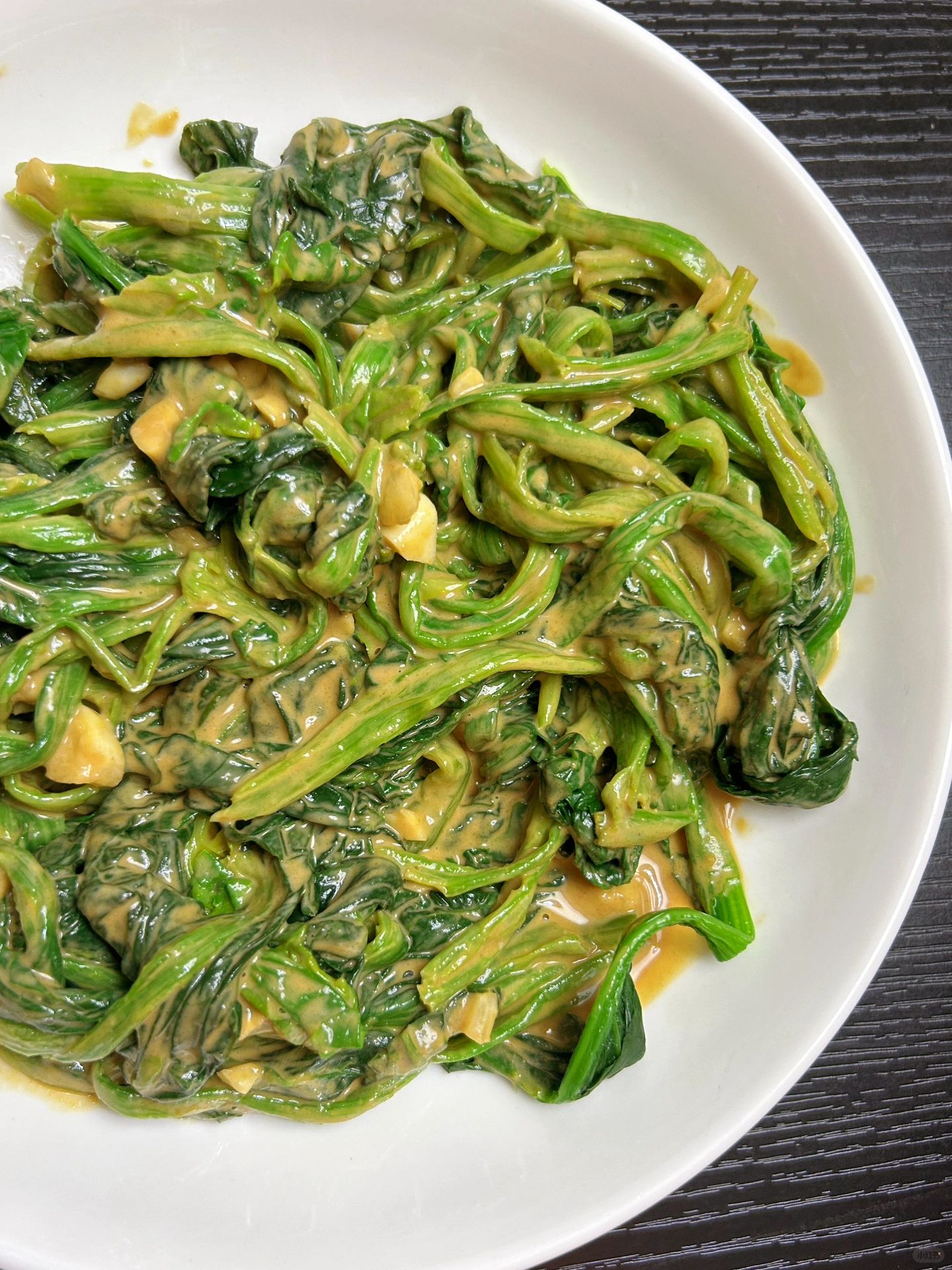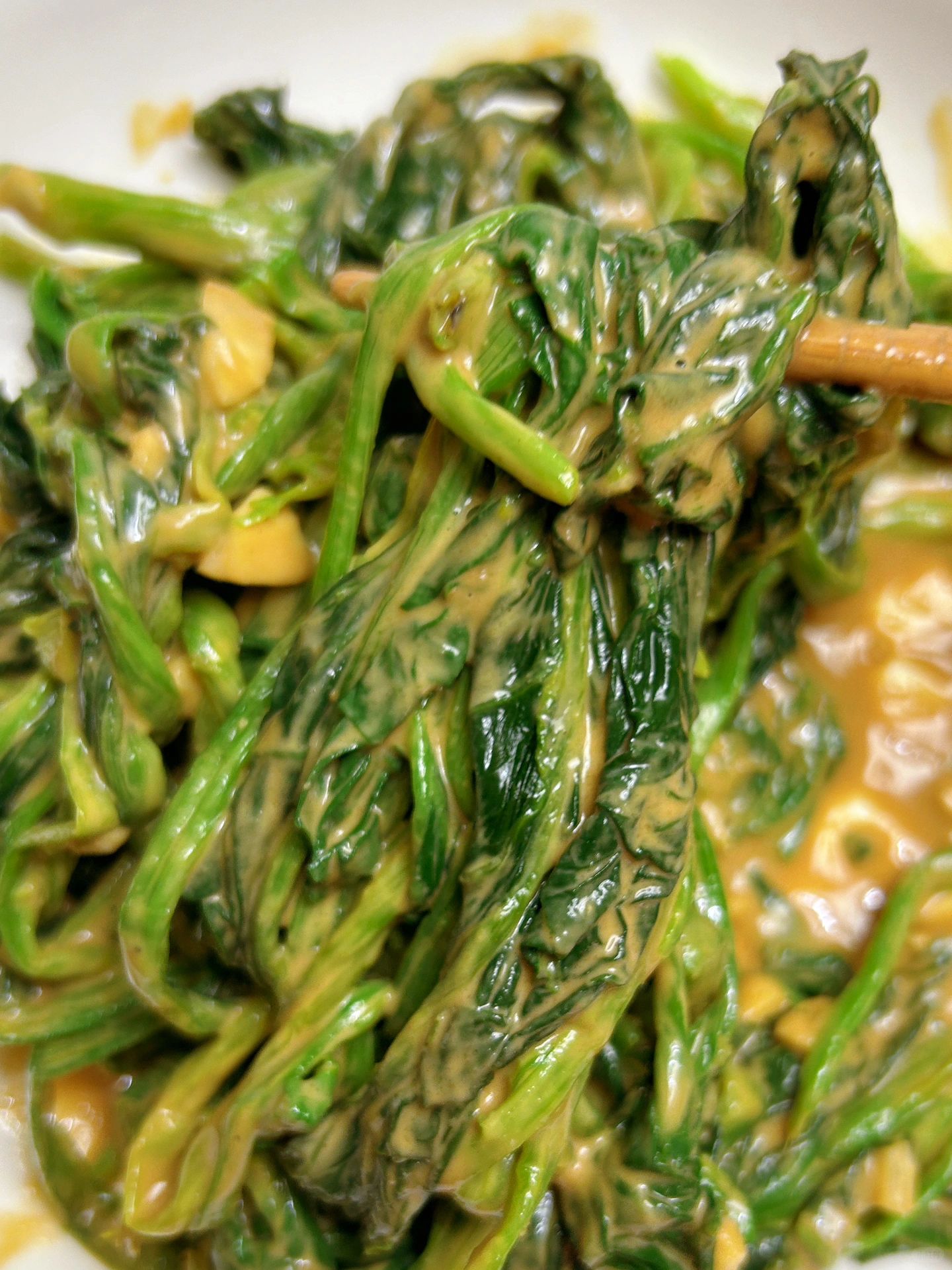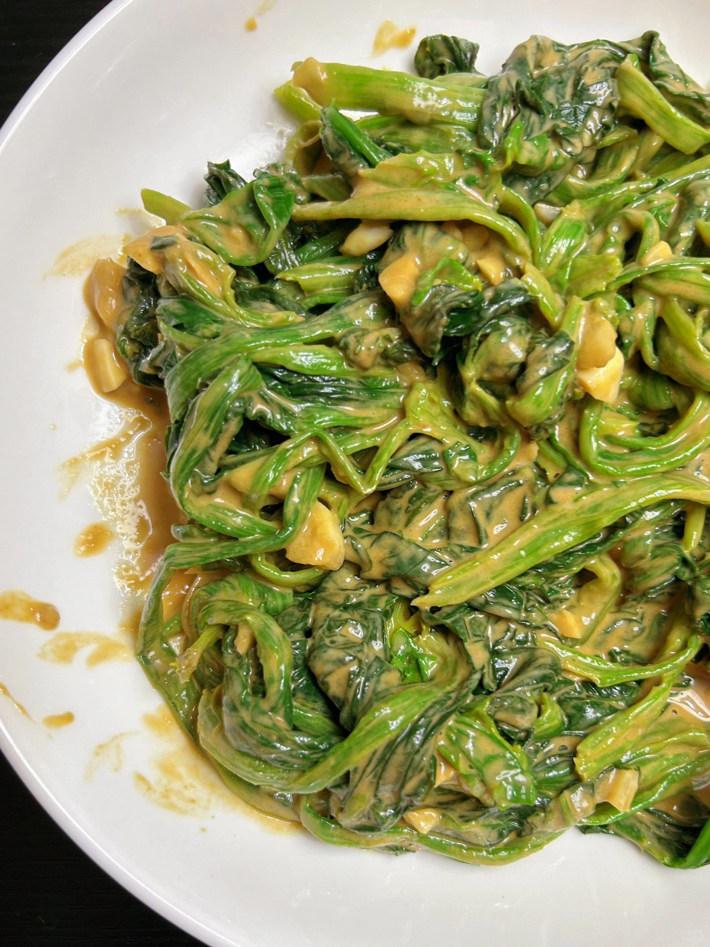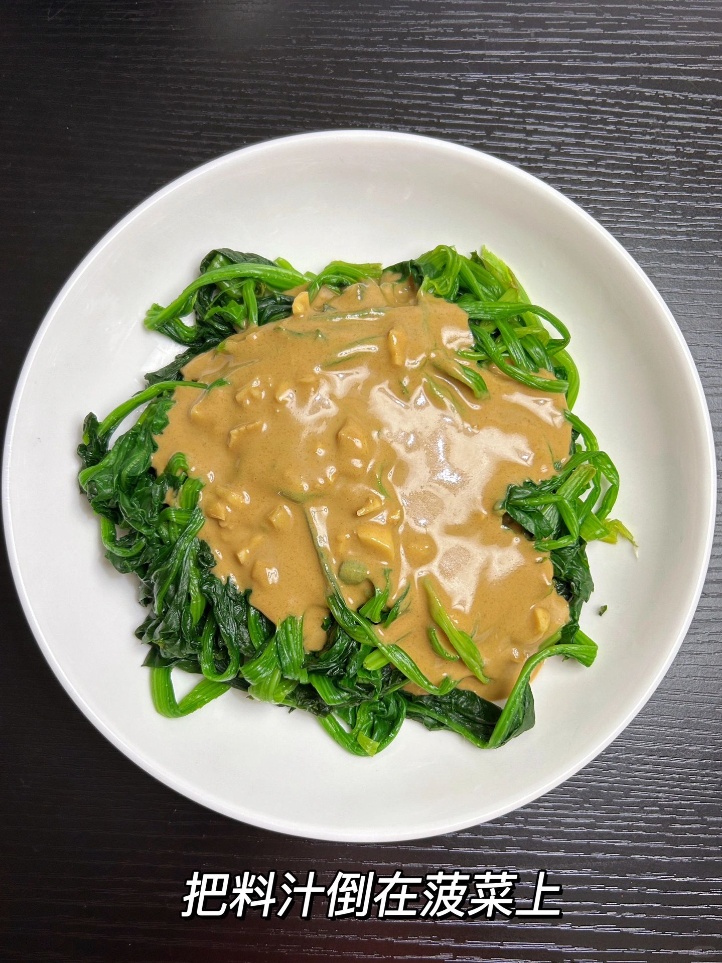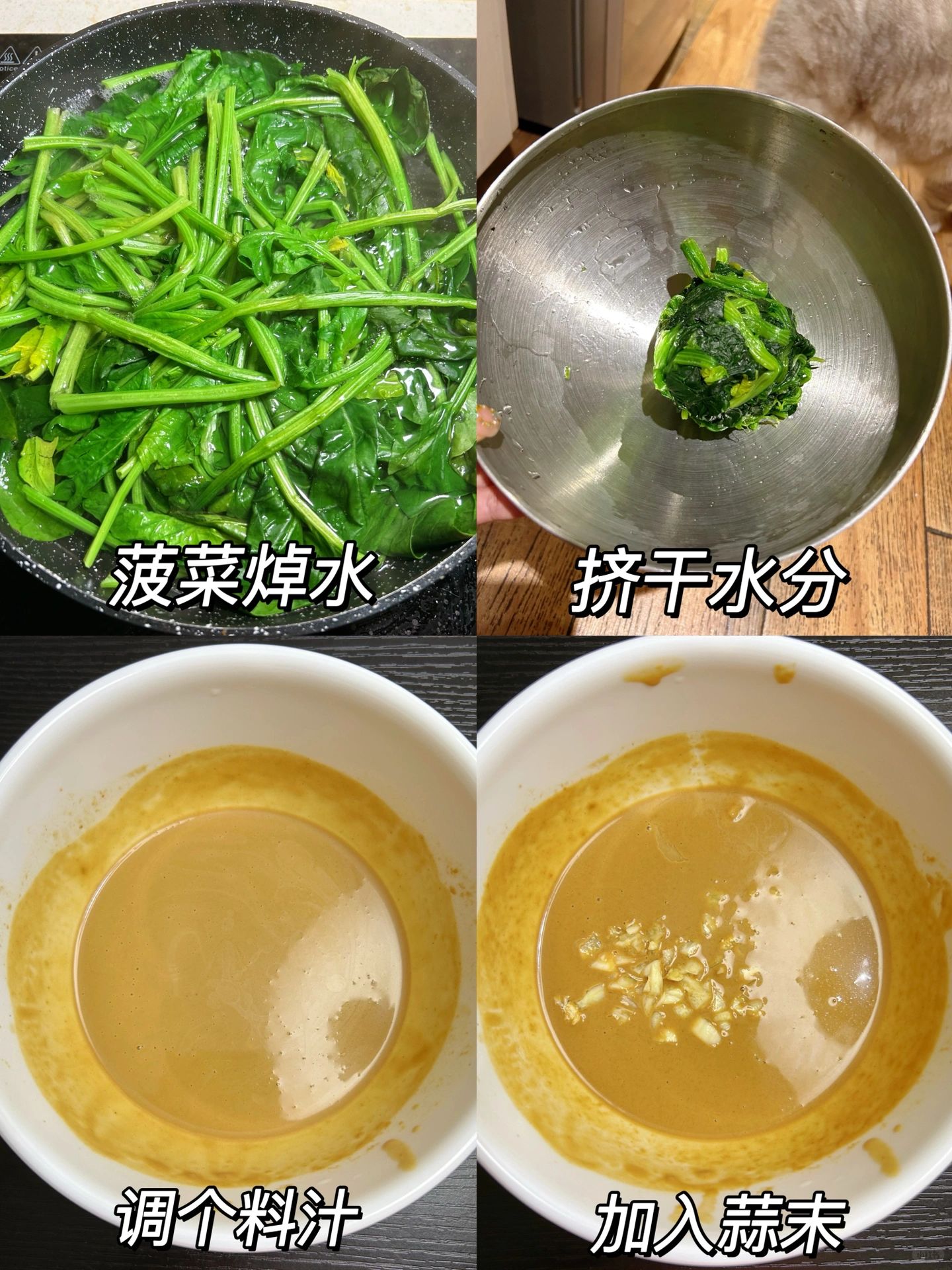 这个麻酱菠菜 简单又好吃 满满的麻酱香 太绝了!! 1️⃣菠菜焯水,过凉水后挤干水分装盘 2️⃣调个料汁:2勺芝麻酱、1勺生抽、1勺醋、1勺香油、1勺盐、1勺糖拌匀,再加入蒜末 3️⃣把料汁倒在菠菜上拌匀 完成✅ 每次吃火锅都会这么吃 真的好香!