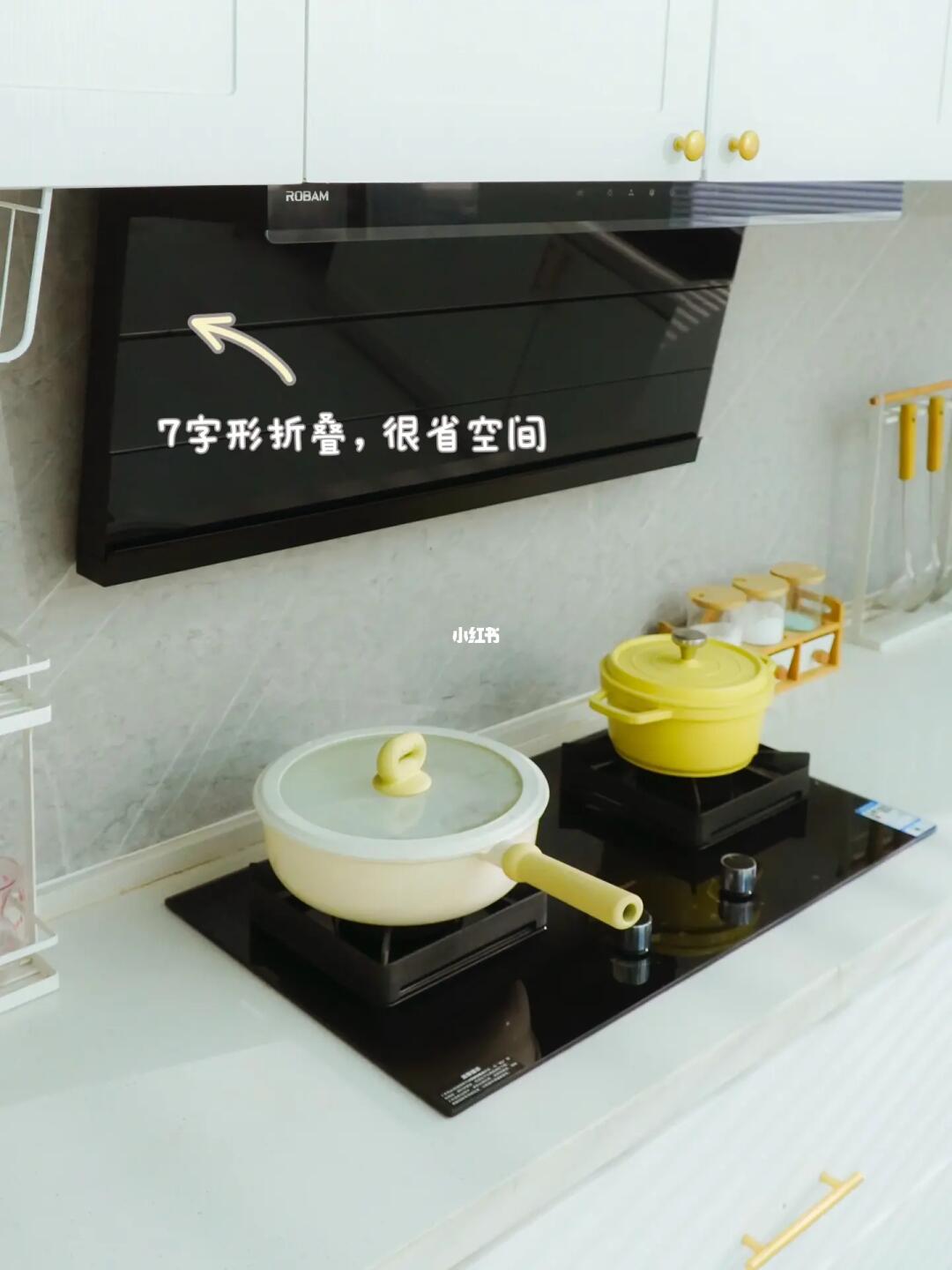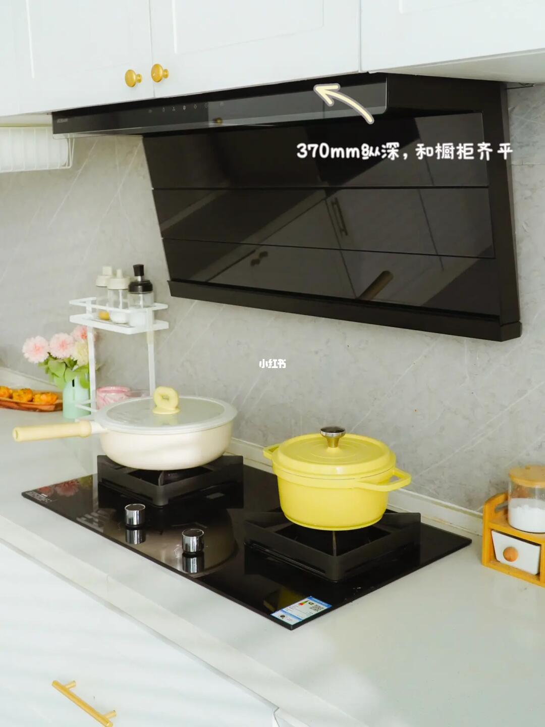 而且烟机的造型是7字形折叠,188霸道总裁炒菜也不磕头,架个超大蒸锅也不碍事🫐,不用时放在那颜值也很高,机身很薄,370mm纵深就和橱柜齐平,一点都不违和,面板看着可太高级了☔️,完全不会黑压压看着碍眼