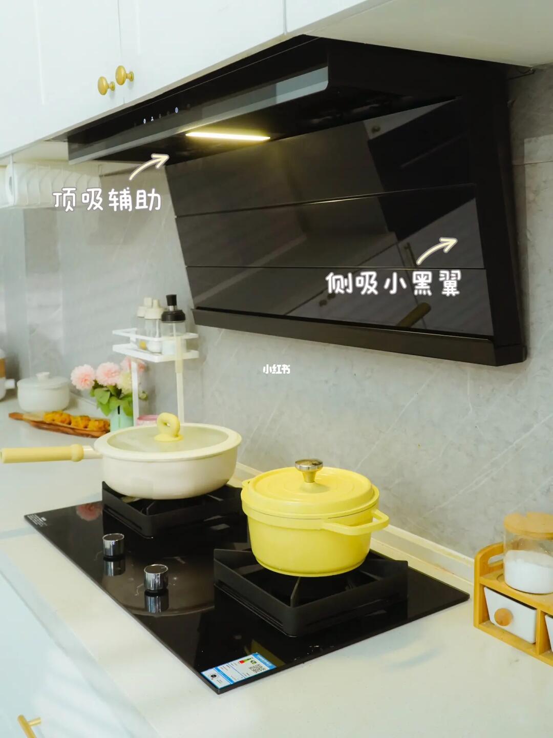 结合之前的悲惨厨房生活,我对油烟机的诉求就是,首先吸力足够别让我当油腻女💅,其次节省空间,这样家里男的做饭也不磕头🙅🏻♂️,再就是好打理,毕竟谁有那功夫做完饭还要拿个小抹布盘它💆🏼♀️,含泪做了一大大大大堆功课,最终选了老板顶侧双吸小黑翼油烟机