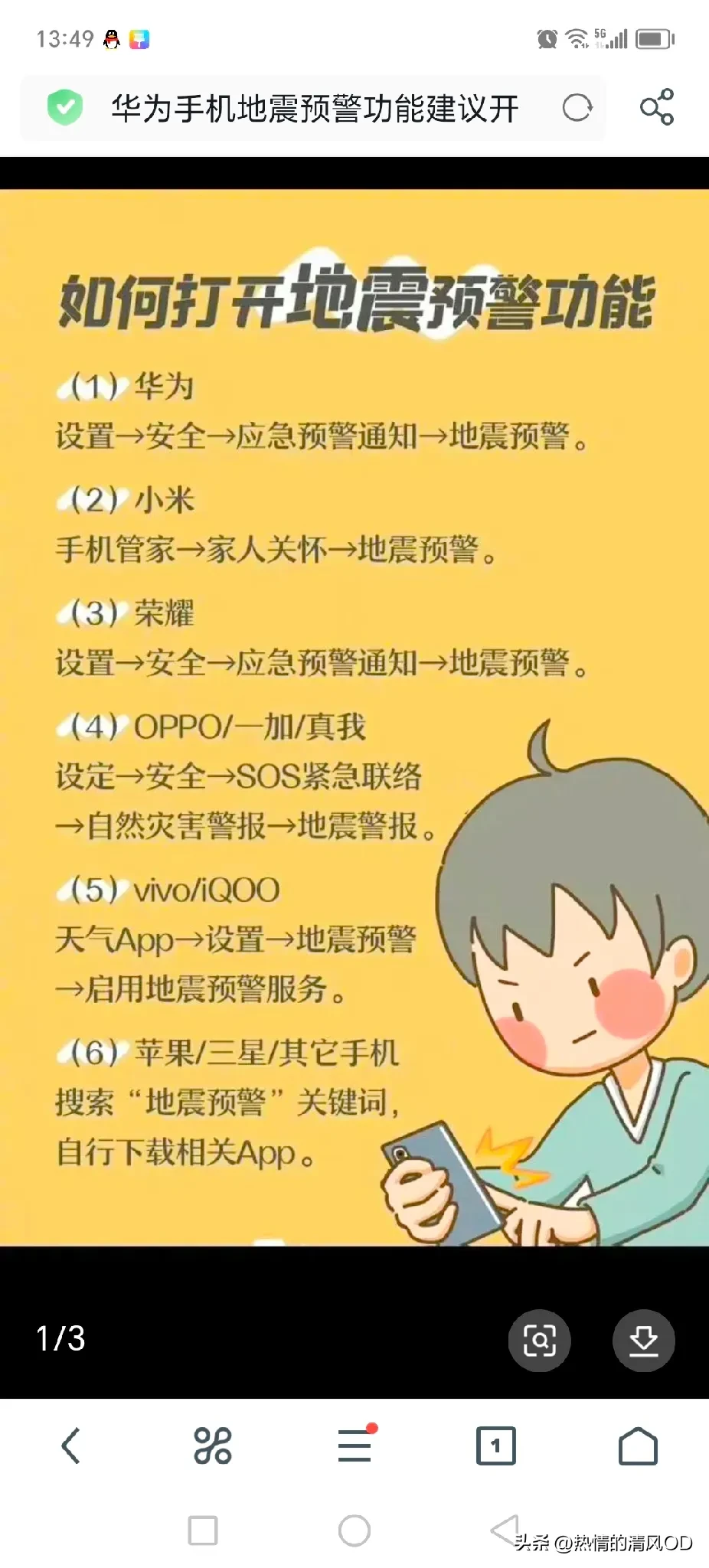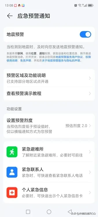别慌!只需一步:打开「设置」>点击「安全」>点击「应急预警通知」>将「地震预警」
