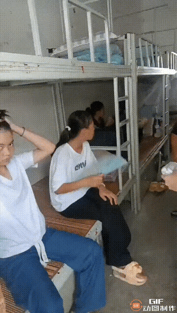 图一:小孩子是真很容易满足啊,一个小水坑就能让她们开心一天。 图二:一个宿舍能住多少人啊?感觉都挤得满满的啊。