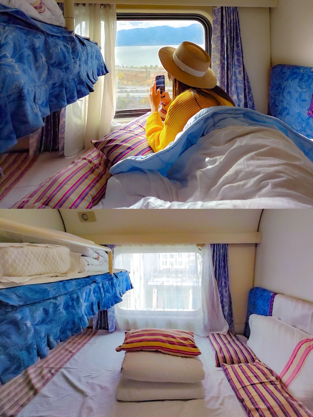 ✅多人或家庭(一家三口)、或喜欢拍照的建议选择软包,软包在火车二层,一人票可带两人上车(走人工通道),就能一起体验在火车躺着看苍山洱海的感觉,很舒服