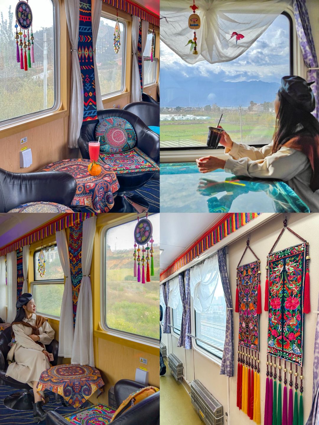 而且餐厅☕️和酒吧🍻车厢内装饰也极具云南特色