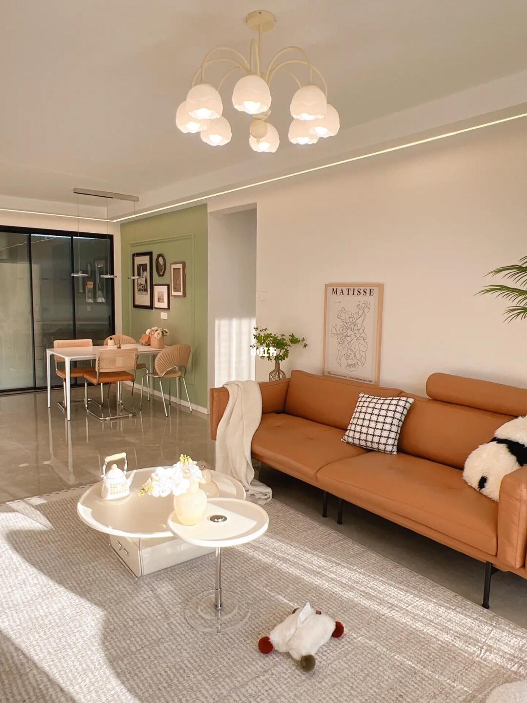 喜欢这样充满烟火气的家,不喜欢黑白灰不喜欢奶油白,就用了棕色和复古绿搭配,真的很温馨