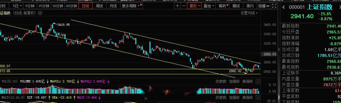 上半场就这样结束了,A股最低跌到了2936点,大跌超过1%