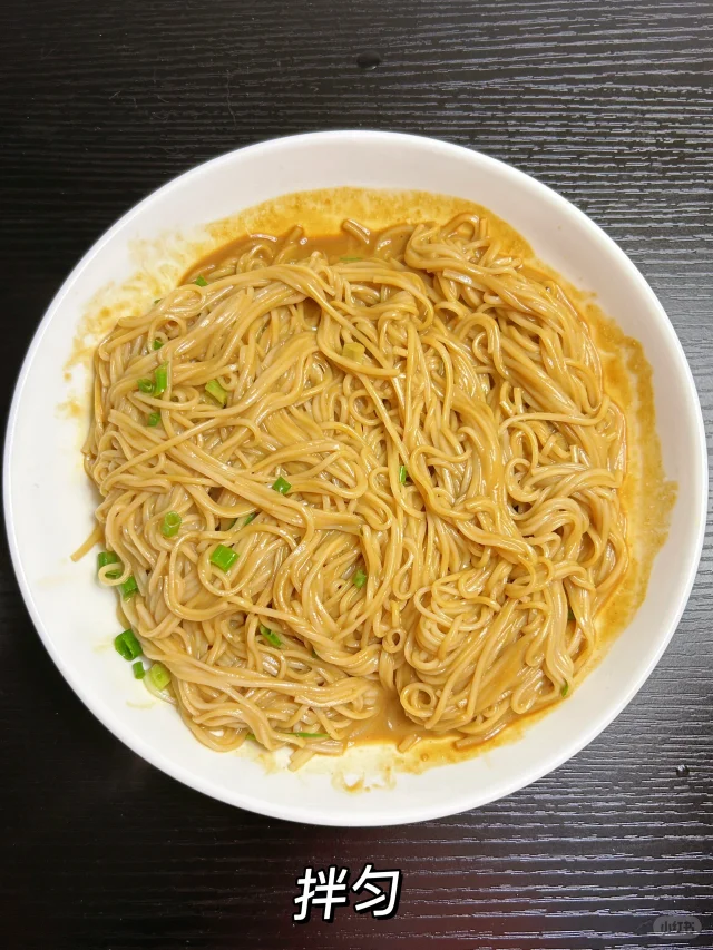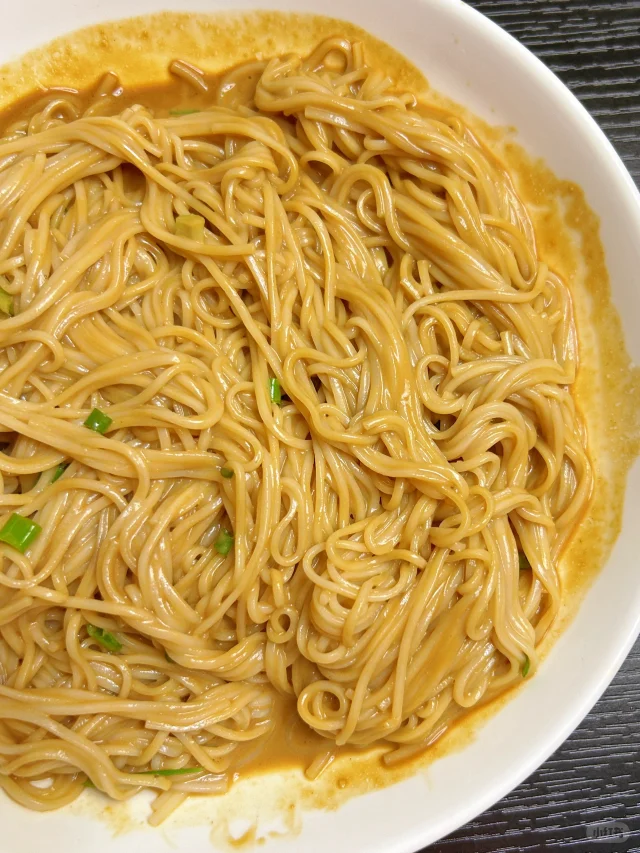 超爱沙县的飘香拌面 被我做出来啦! 做法简单,5分钟搞定! 1️⃣碗里加入2勺芝麻酱、1勺猪油、2勺生抽、半勺老抽、半勺糖、1勺醋,加点温水拌匀 2️⃣煮面条,煮熟后过凉水装盘,撒上葱花,倒入刚才的料汁拌匀 完成✅ 就是那个味儿!! 香迷糊了!