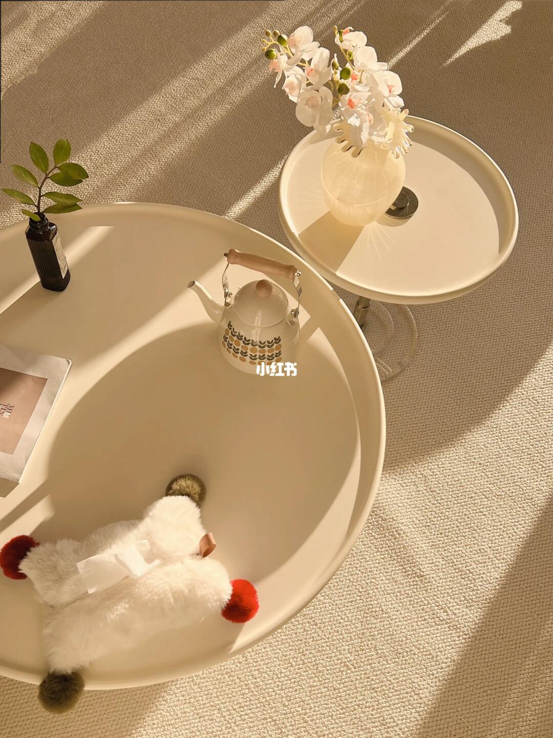 被吹爆的奶油茶几终于到货了,随便拍都好看